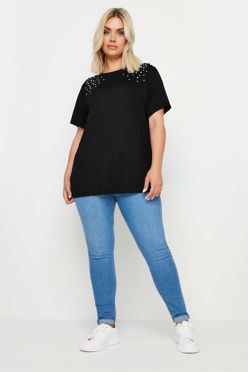 Футболка с жемчужной отделкой Yours Curve, черный 4 516₽