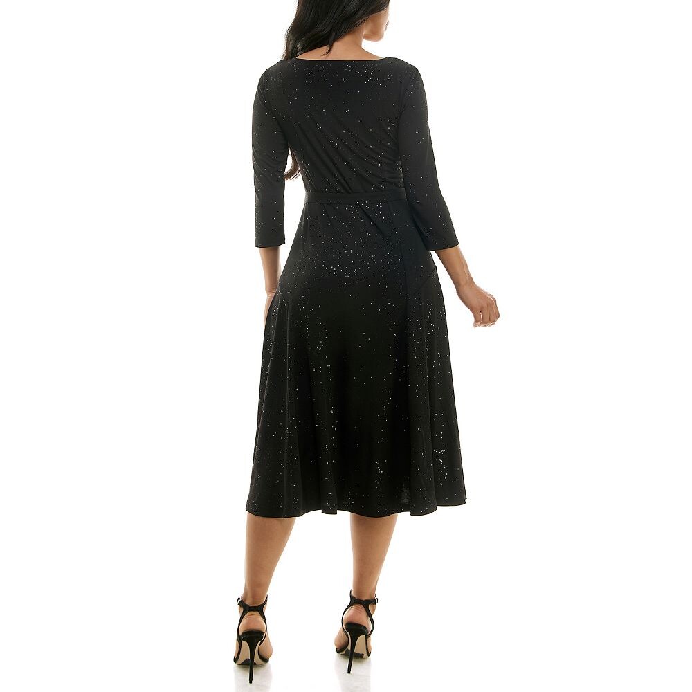 Женское блестящее платье миди Nina Leonard Sylvia, цвет Black Silver
