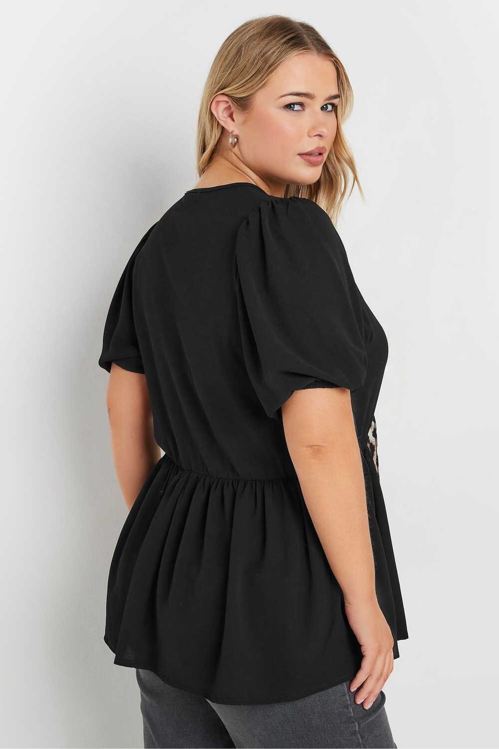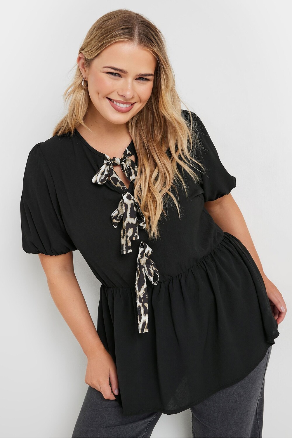Тканый топ с бантом и леопардовым принтом Yours Curve, черный