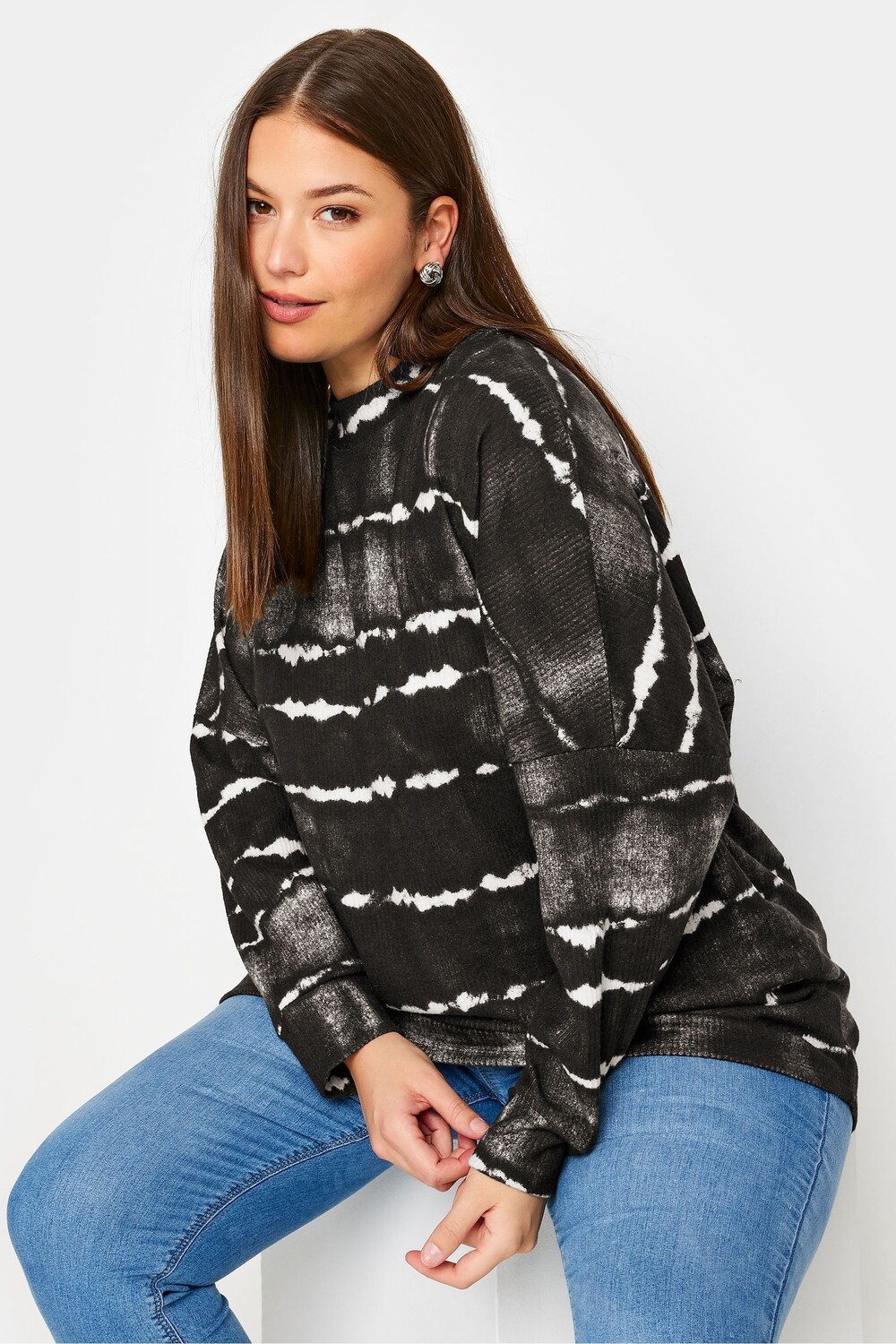 Мягкий на ощупь джемпер с принтом тай дай Yours Curve, черный