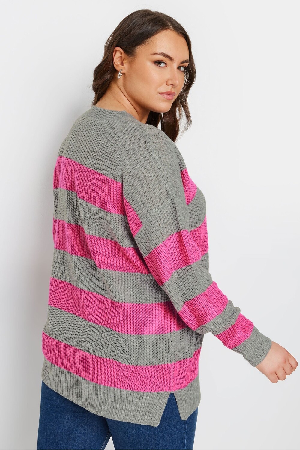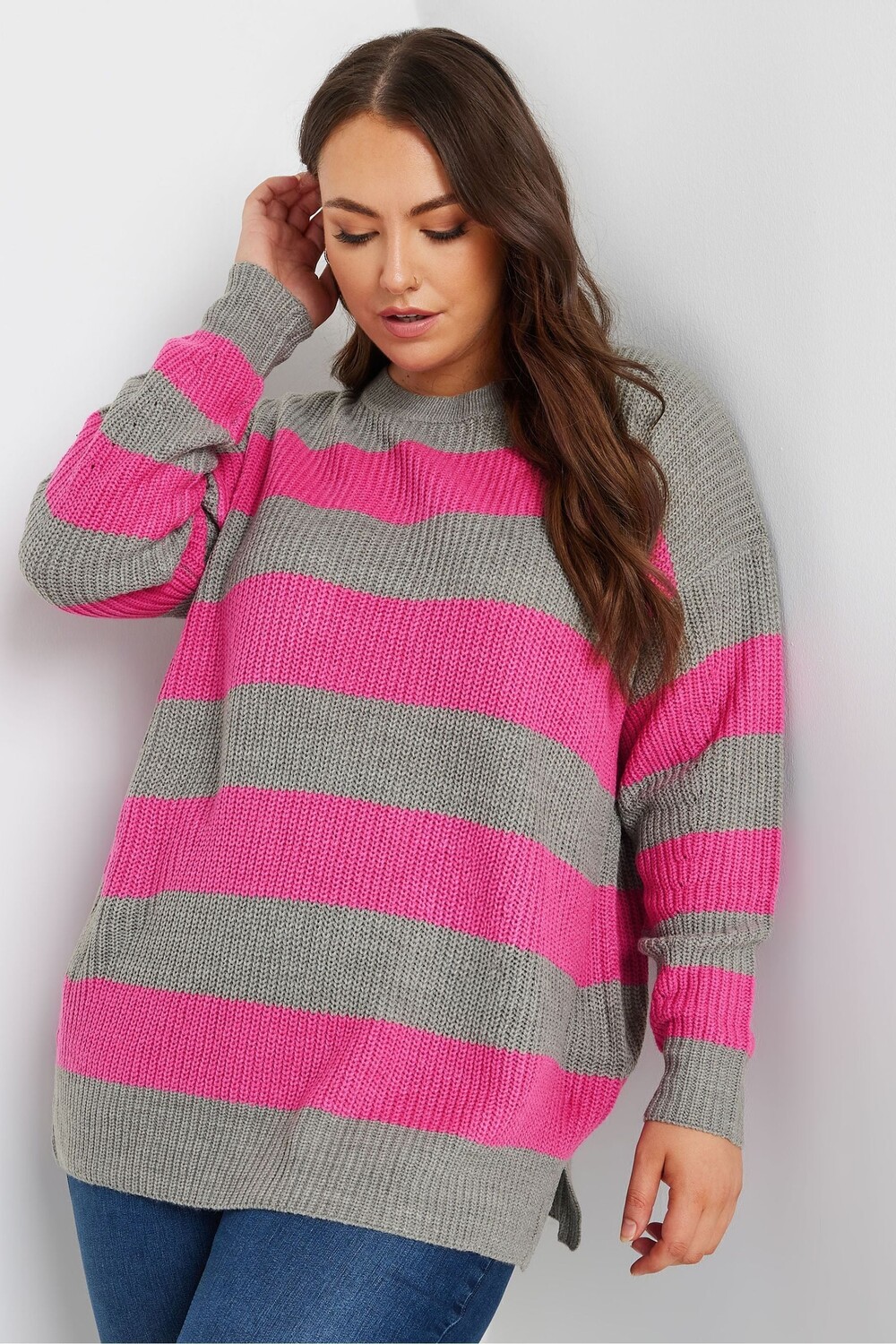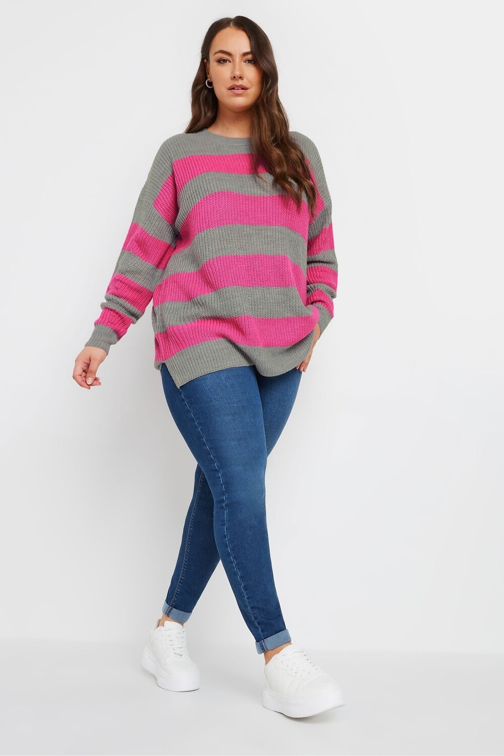 Полосатый джемпер со спущенным плечом Yours Curve, розовый 4 479₽