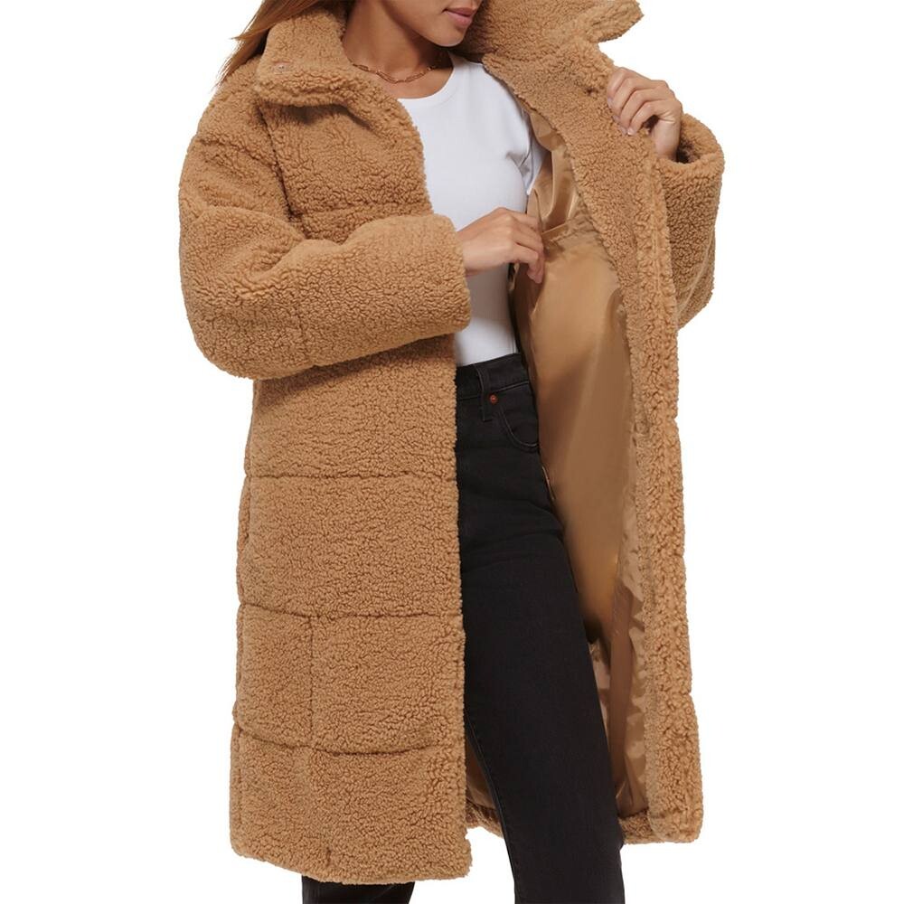 Уют и стиль сочетаются с этим длинным стеганым женским пальто из шерпы Levi's.
