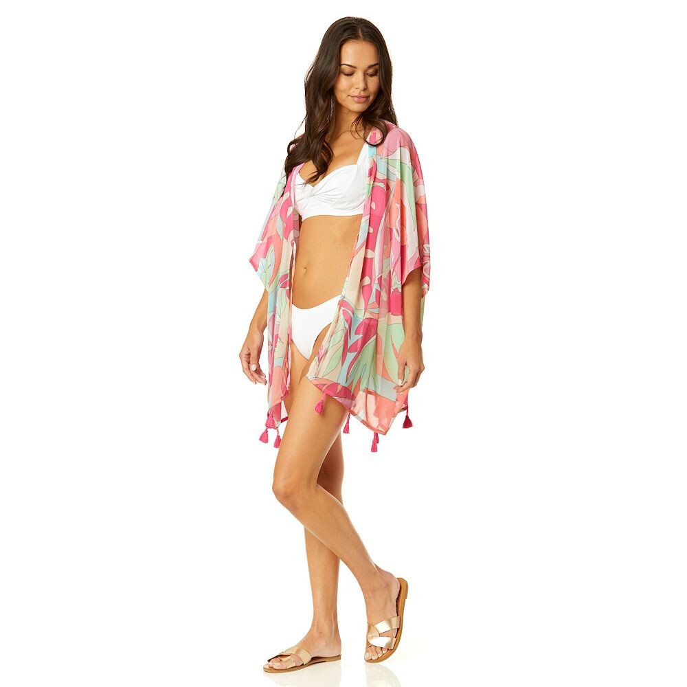 Нежитесь ли вы под лучами солнца или просто отдыхаете в тени, это женское купальное платье-кимоно с кисточками от Catalina прикроет вашу спину.