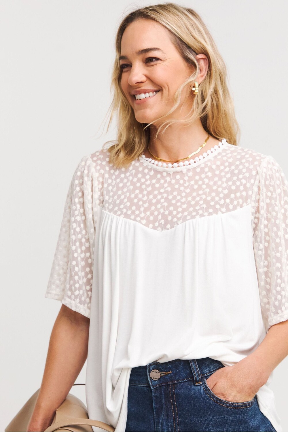 Верхняя часть с плетеным кружевом Jd Williams, белый