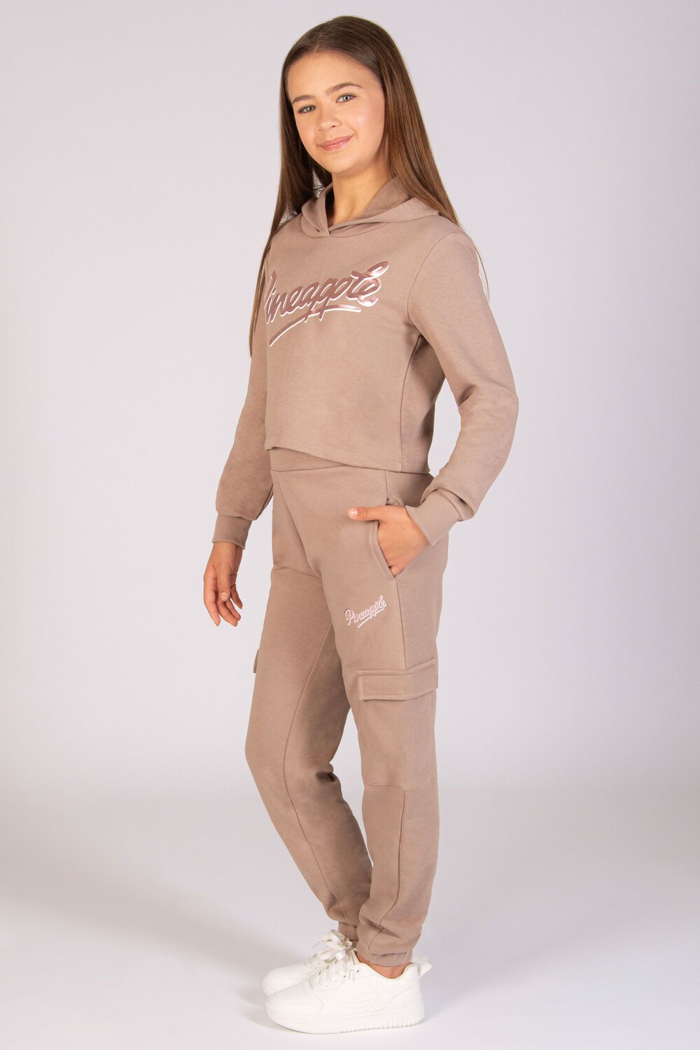 Укороченная толстовка с капюшоном с логотипом для девочек Pineapple, коричневый