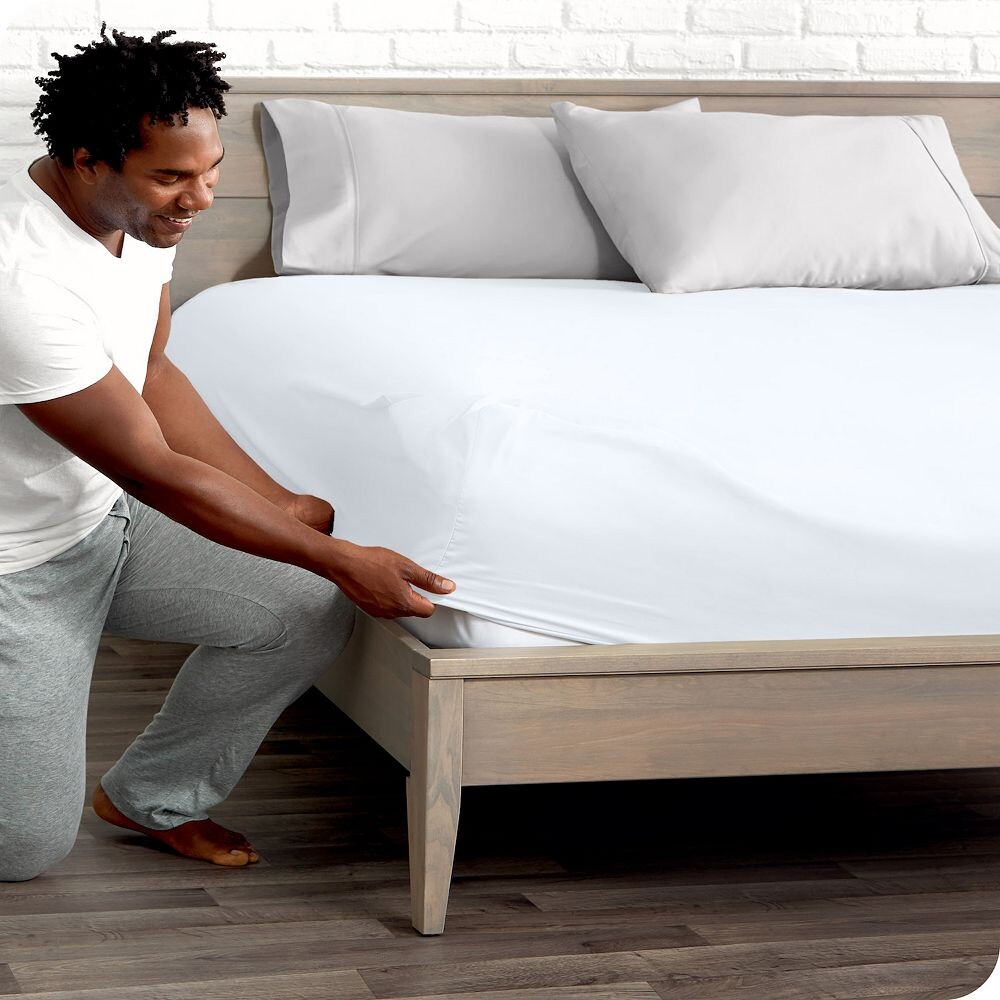 Наша самая популярная простыня теперь с чем-то дополнительным. Двойная наческа для мягкости и два удобных боковых кармана с каждой стороны для хранения телефона, пульта дистанционного управления и многого другого. Эта простыня полностью эластична и обеспечивает надежную фиксацию на матрасе любого размера глубиной до 15 дюймов. Машинная стирка в холодной воде с изделиями аналогичных цветов, сушка в стиральной машине при низкой температуре. Не отбеливать.