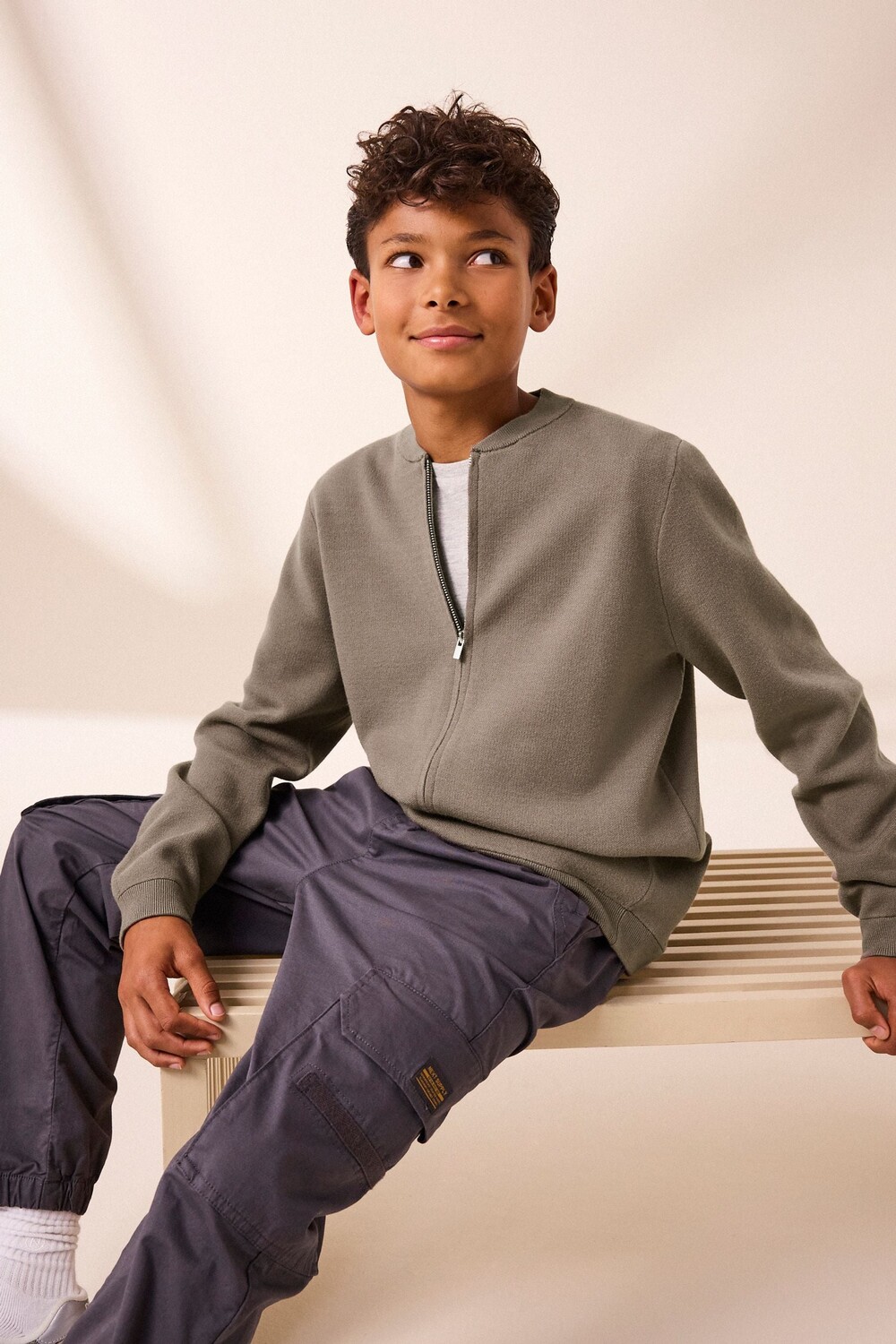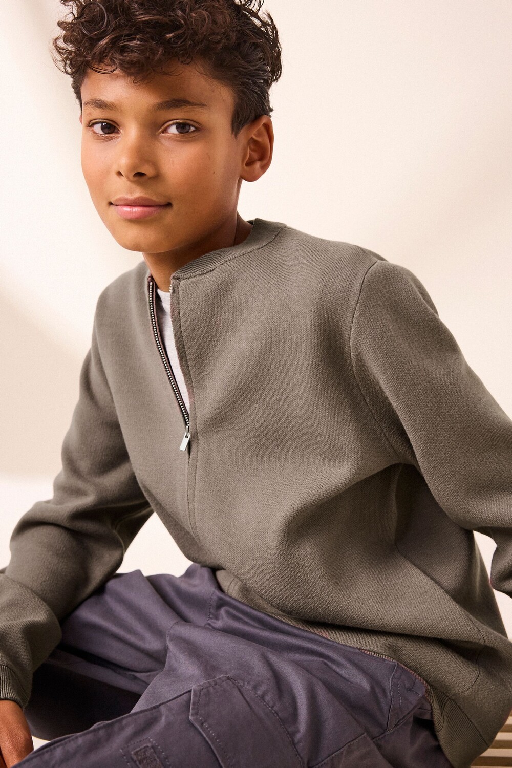 Вязаный кардиган бомбер на молнии (3 16 лет) Next, нейтральный