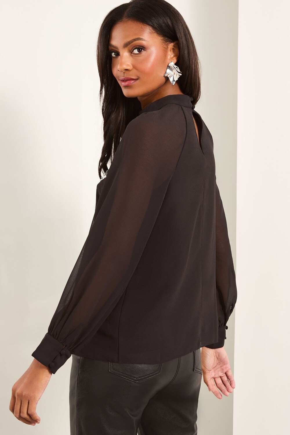 Блузка с высоким воротом и отделкой Lipsy, черный