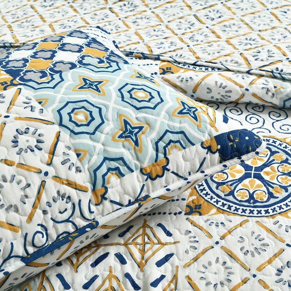 Это лоскутное одеяло, уникальным образом сочетающее в себе девять различных вариаций узоров, дополнит атмосферу любой спальни в стиле кантри.