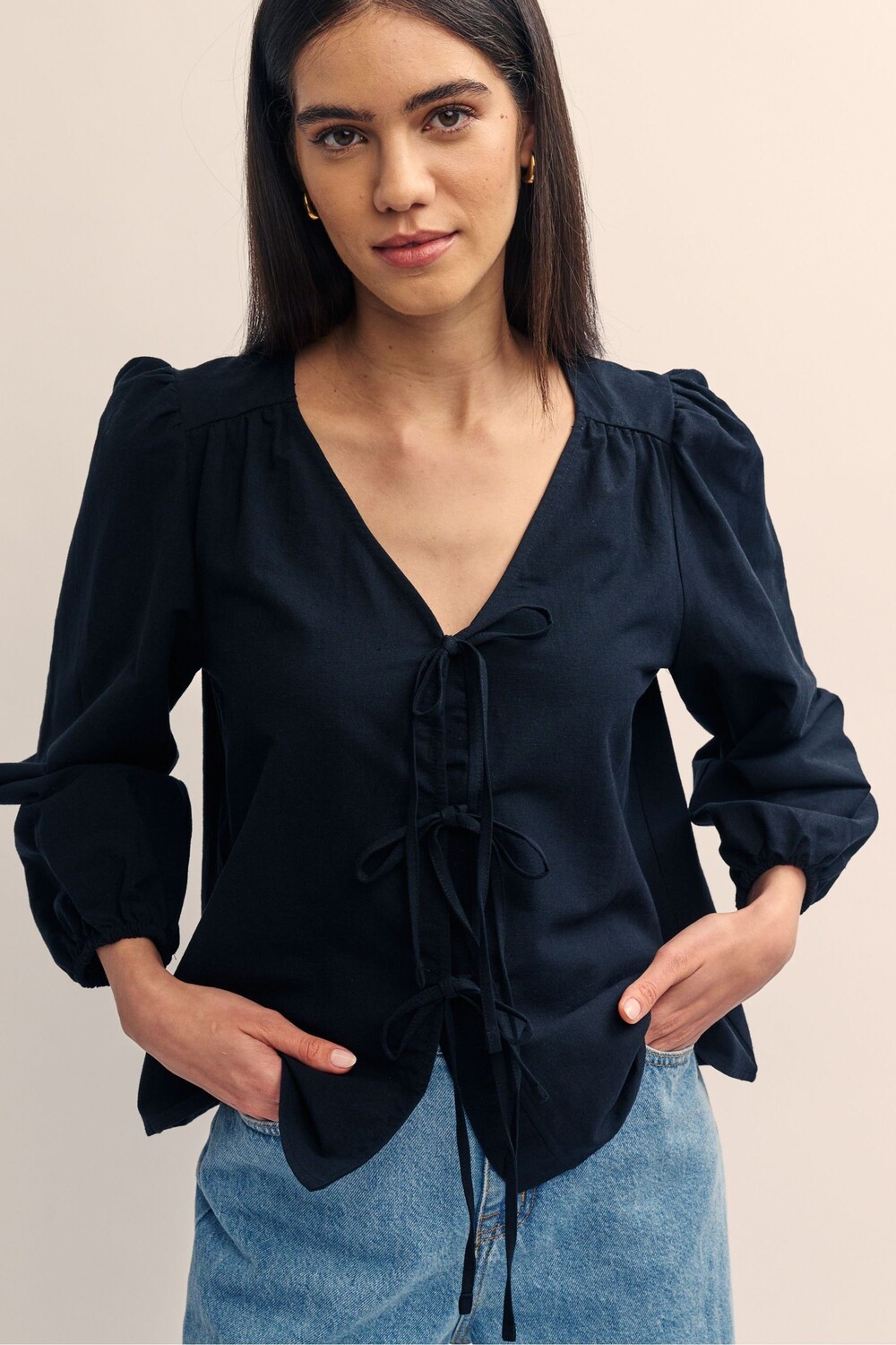 Топ Bernadetta из смеси хлопка и льна Nobody'S Child, черный 6 439₽