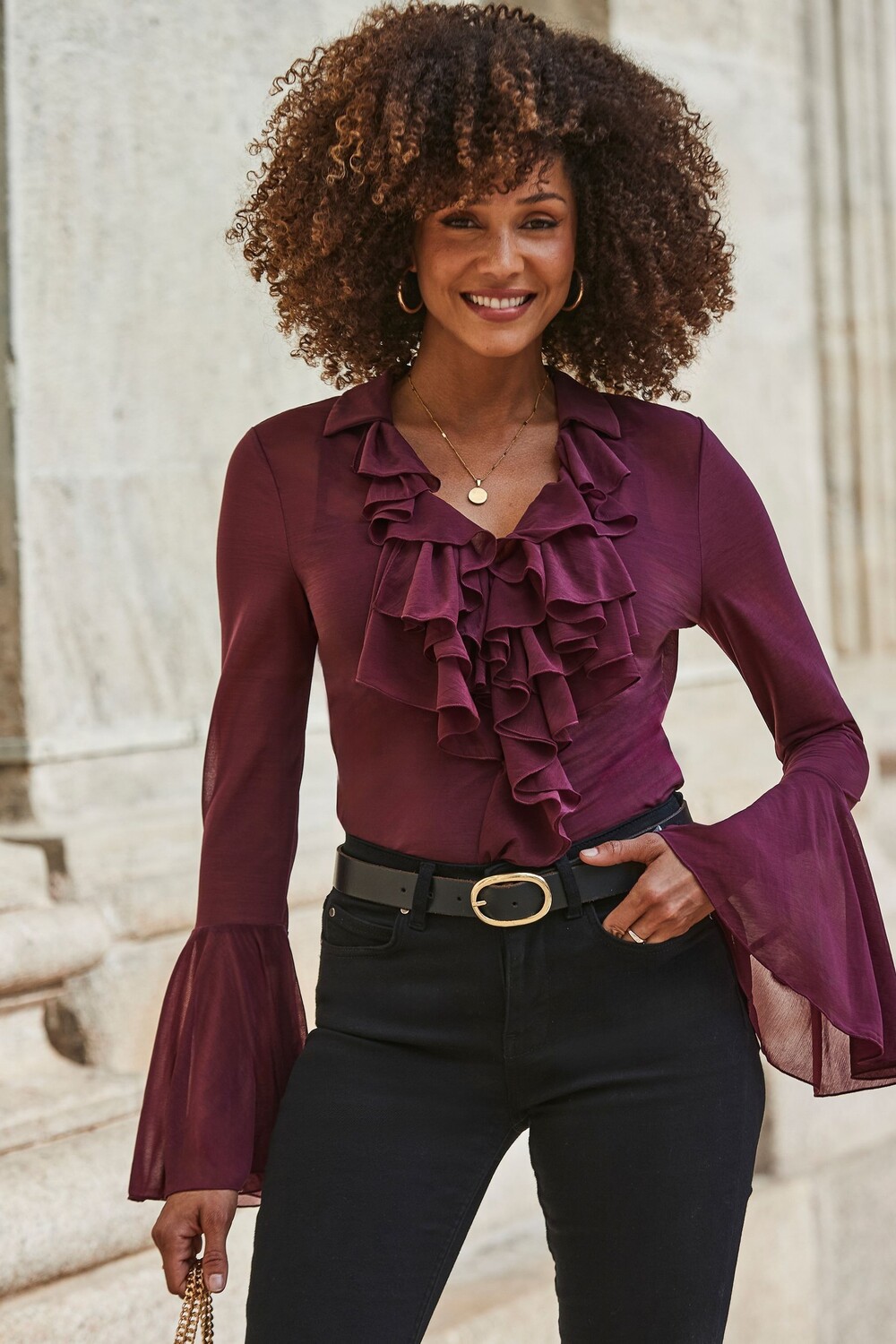 Блузка с оборкой спереди Sosandar, красный