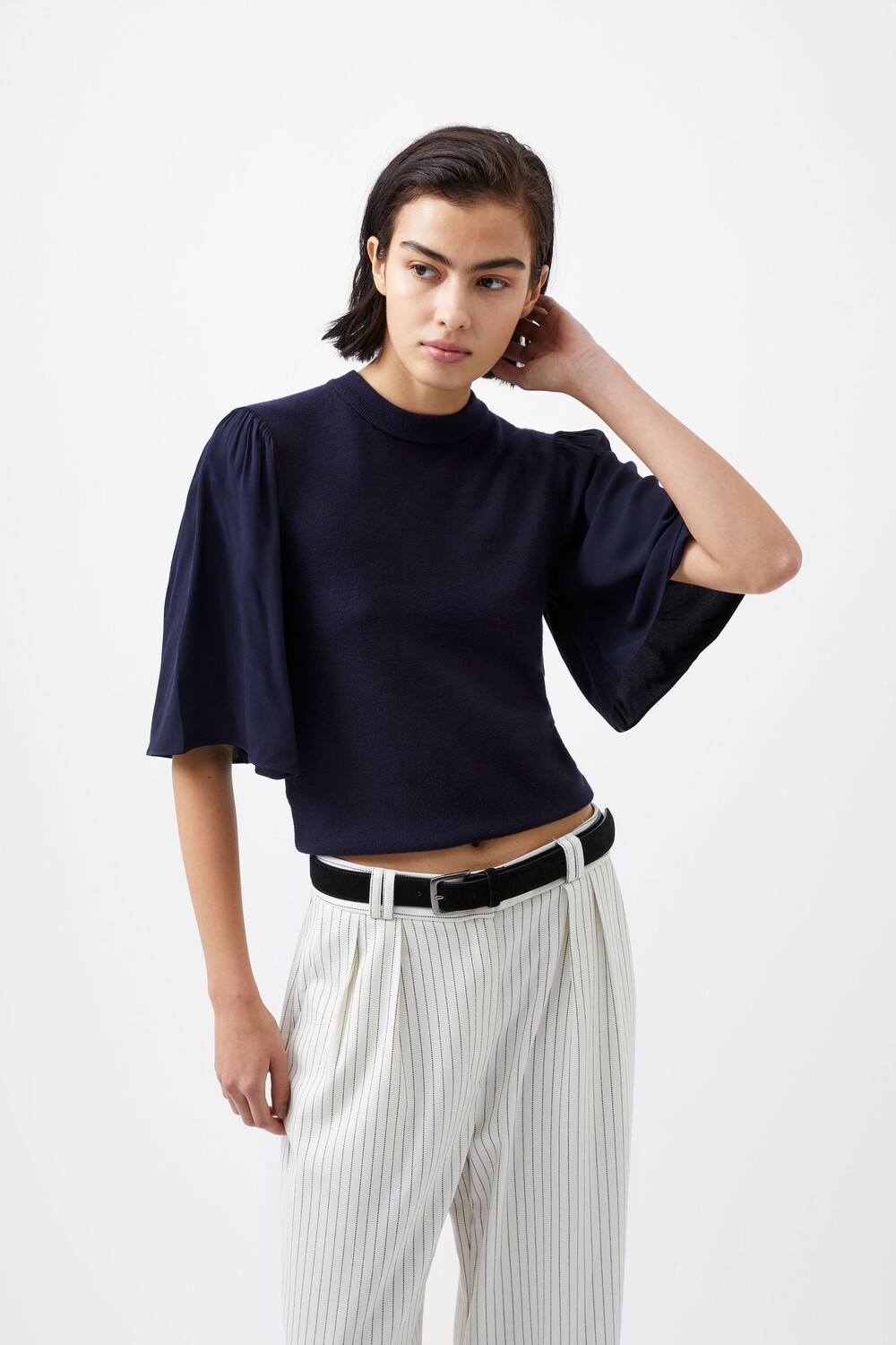 Криста вяжет расклешенный джемпер French Connection, синий