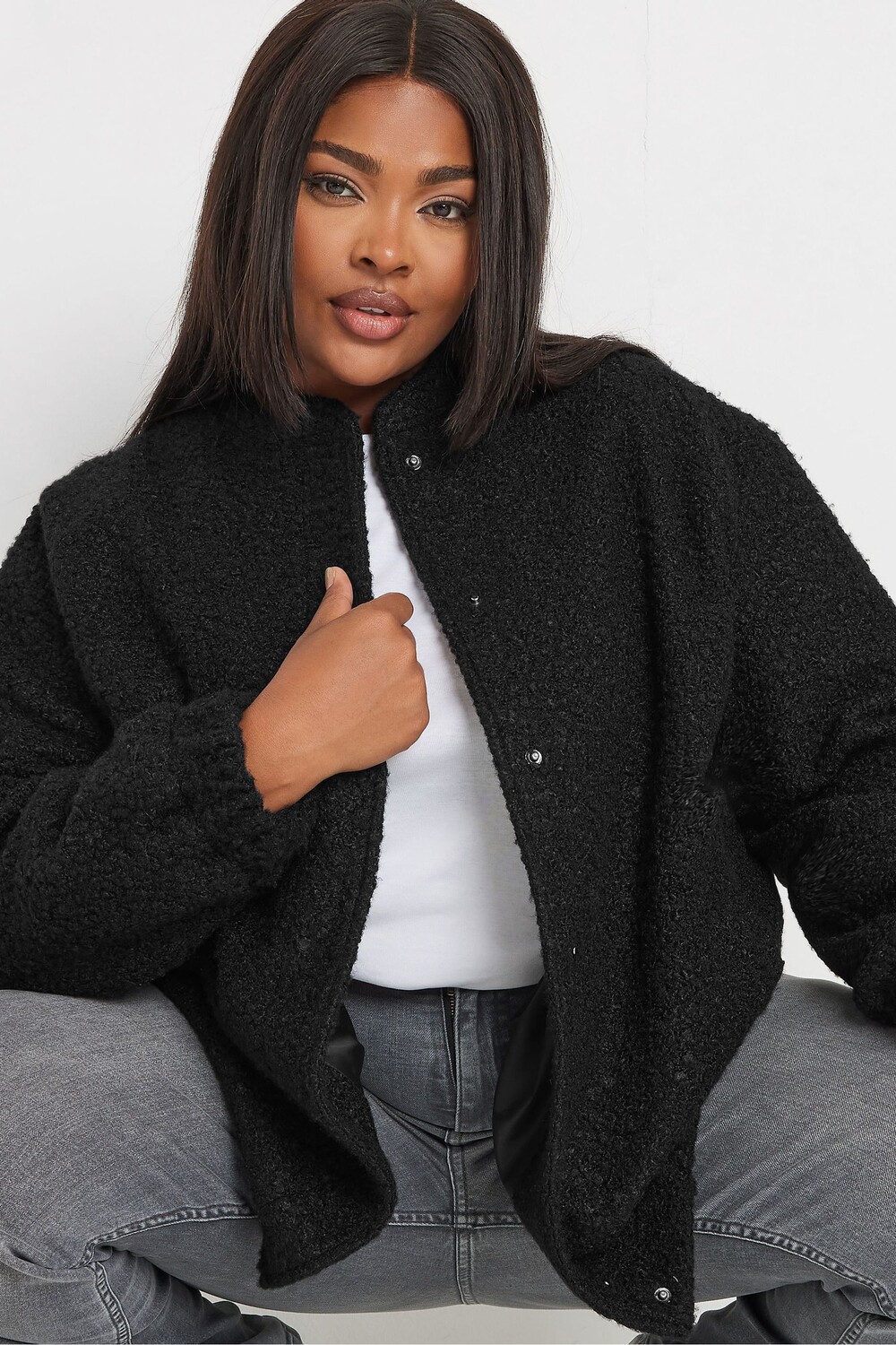 Шерстяная куртка бомбер Yours Curve, черный 7 293₽