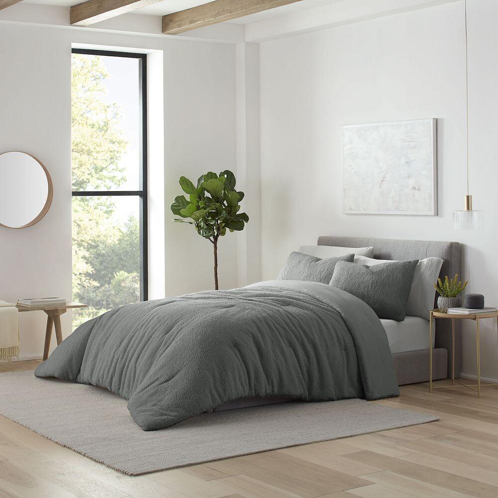 Улучшите внешний вид вашей спальни с помощью этого комплекта одеял Vellux Cloud Warm Charcoal с накладками.