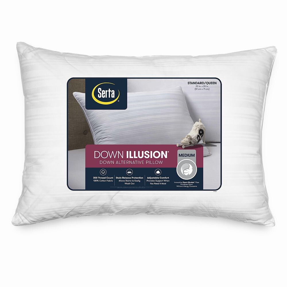 Подушка среднего размера Serta Down Illusion — идеальная альтернатива подушкам с натуральным наполнителем. Волоконный наполнитель Down Illusion обеспечивает комфорт и мягкость натурального продукта без риска аллергии. Кроме того, она имеет грязеотталкивающий дизайн и грязеотталкивающую обработку, что делает чистку подушки чрезвычайно легкой. Эксклюзивно в Kohl's.