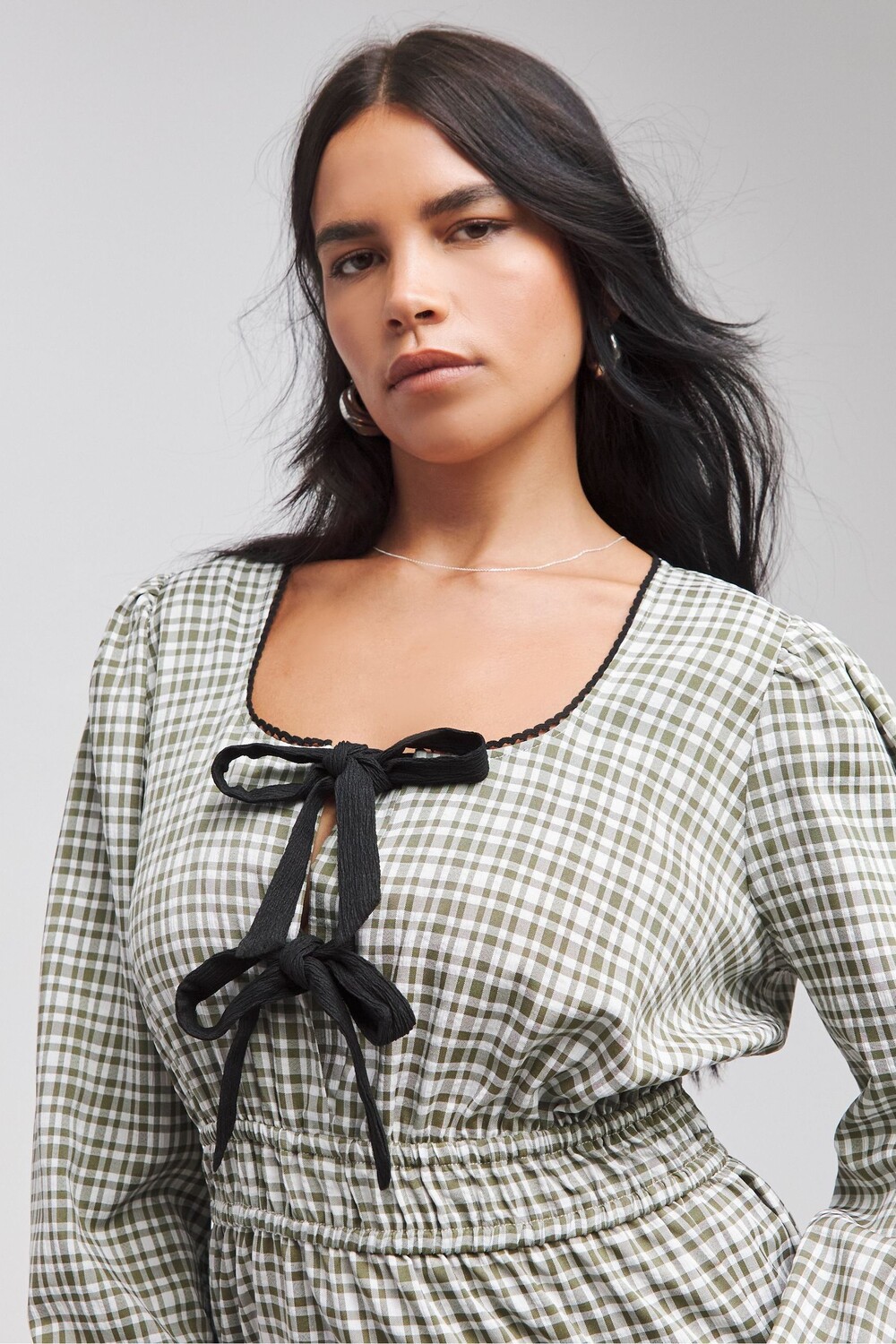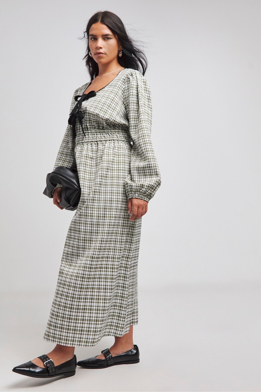 Платье миди в клетку с бантом спереди Simply Be, зеленый