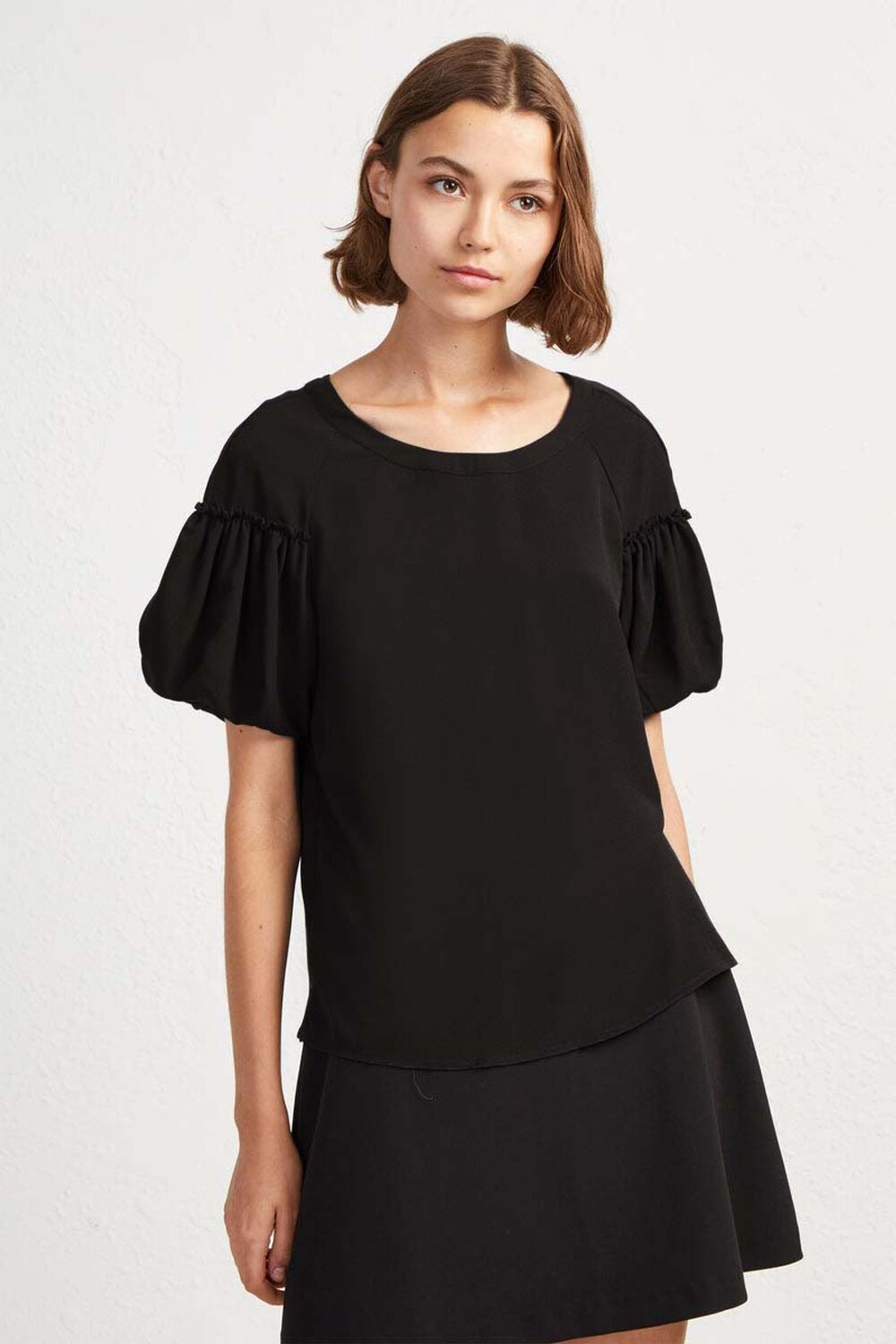 Креповый топ с рукавами фонариками French Connection, черный