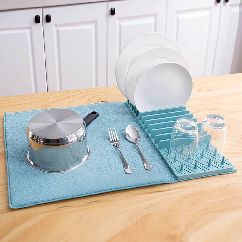 Эта подставка для посуды и набор ковриков идеально подходят для небольших помещений.