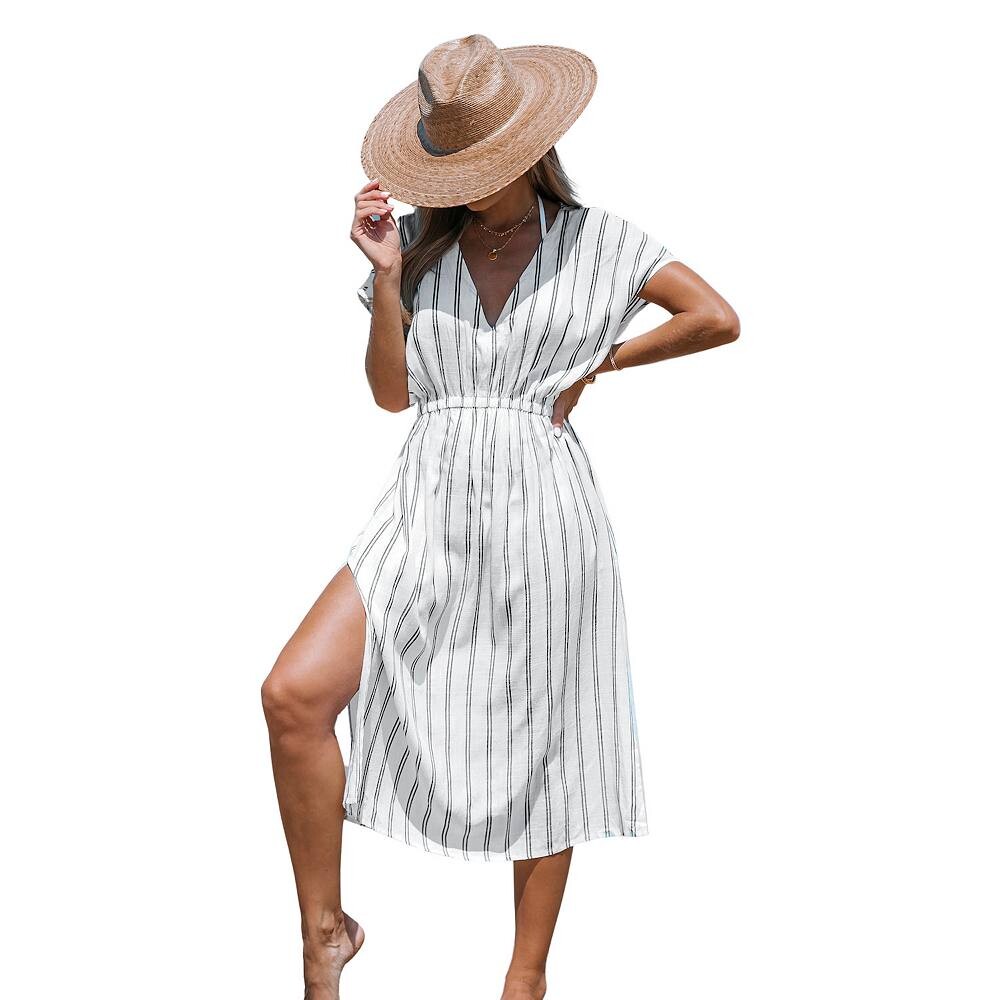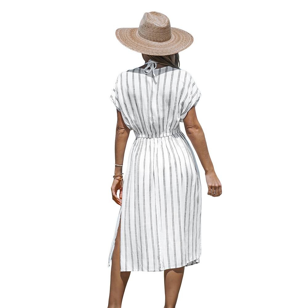 Женское прикрытое платье миди в полоску CUPSHE, белый