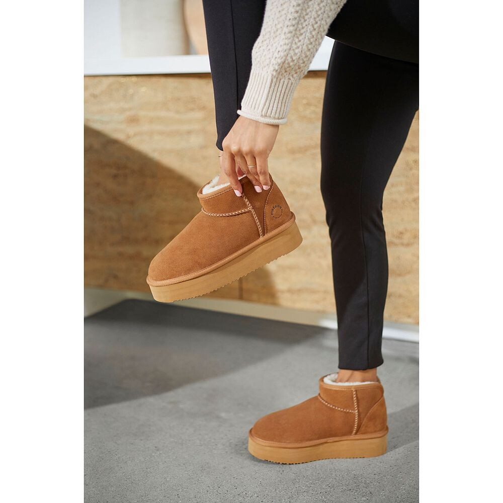 Побалуйте свои ноги уютным стилем женских тапочек Fireside by Dearfoams Kingston на платформе из овчины.