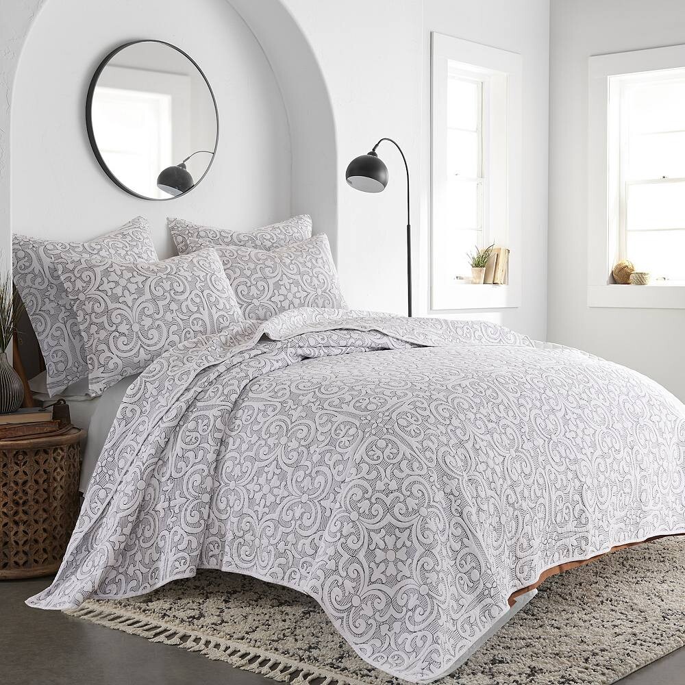 Измените внешний вид своей спальни с помощью этого вневременного вышитого комплекта одеял от Levtex Home.
