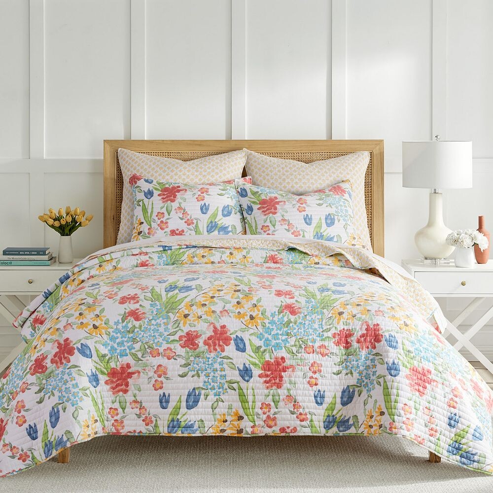 Этот комплект одеял Radella от Levtex Home вдохновлен красочными весенними садами. Этот желто-белый дизайн мгновенно преобразит вашу спальню.