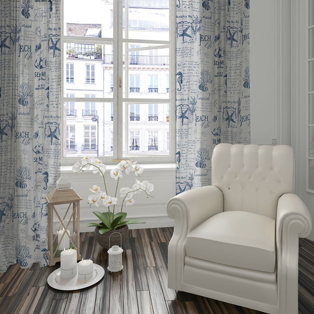 Добавьте пляжную атмосферу в свою гостевую спальню с помощью этого комплекта оконных занавесок с коралловым узором от Levtex Home.