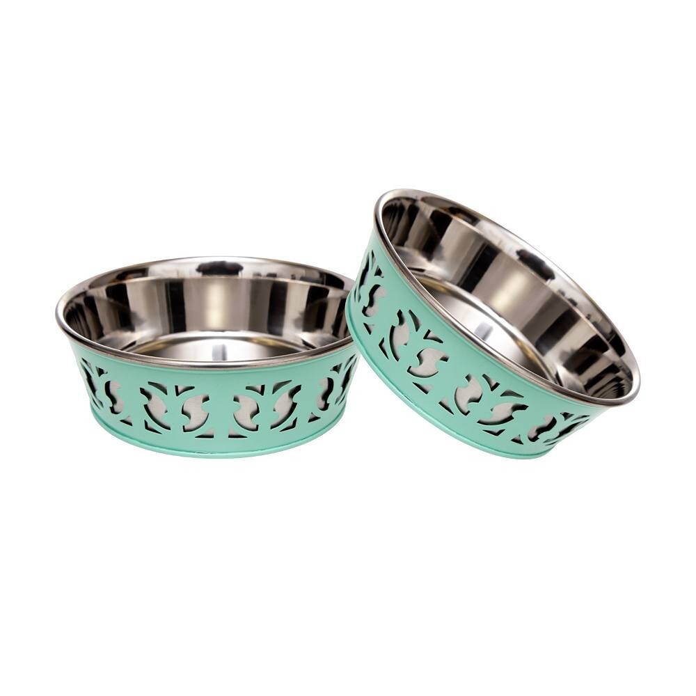 Набор для загородной жизни из 2 мисок для собак из нержавеющей стали — миски в стиле фермерского дома Country Living, цвет Mint Green