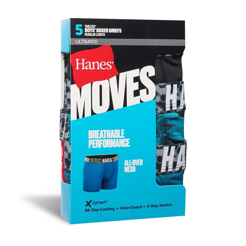Набор из 5 эластичных боксеров Hanes Moves для мальчиков 4–20 лет, черный