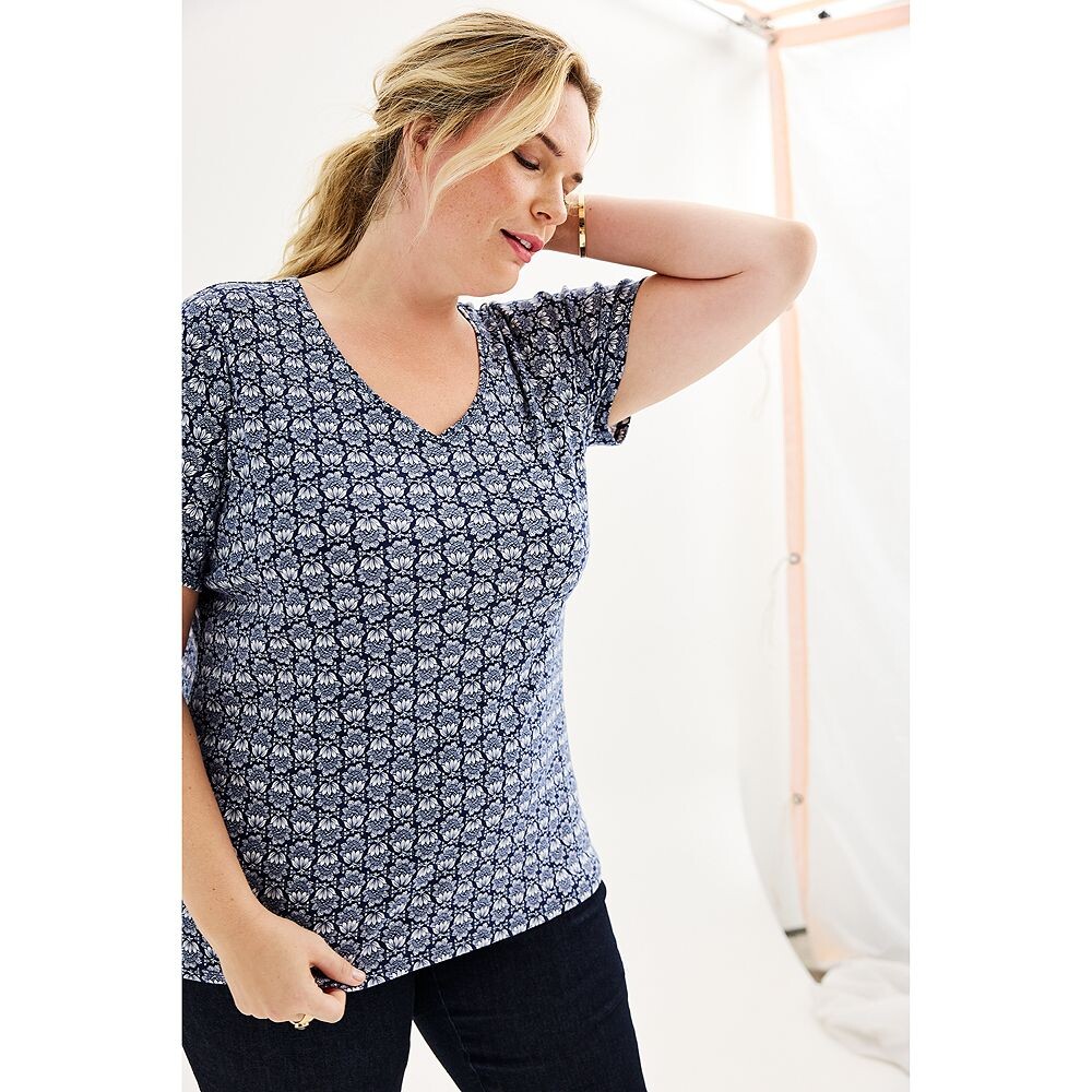 Эта незаменимая женская футболка с v-образным вырезом и принтом Croft & Barrow создает классический стильный образ.
