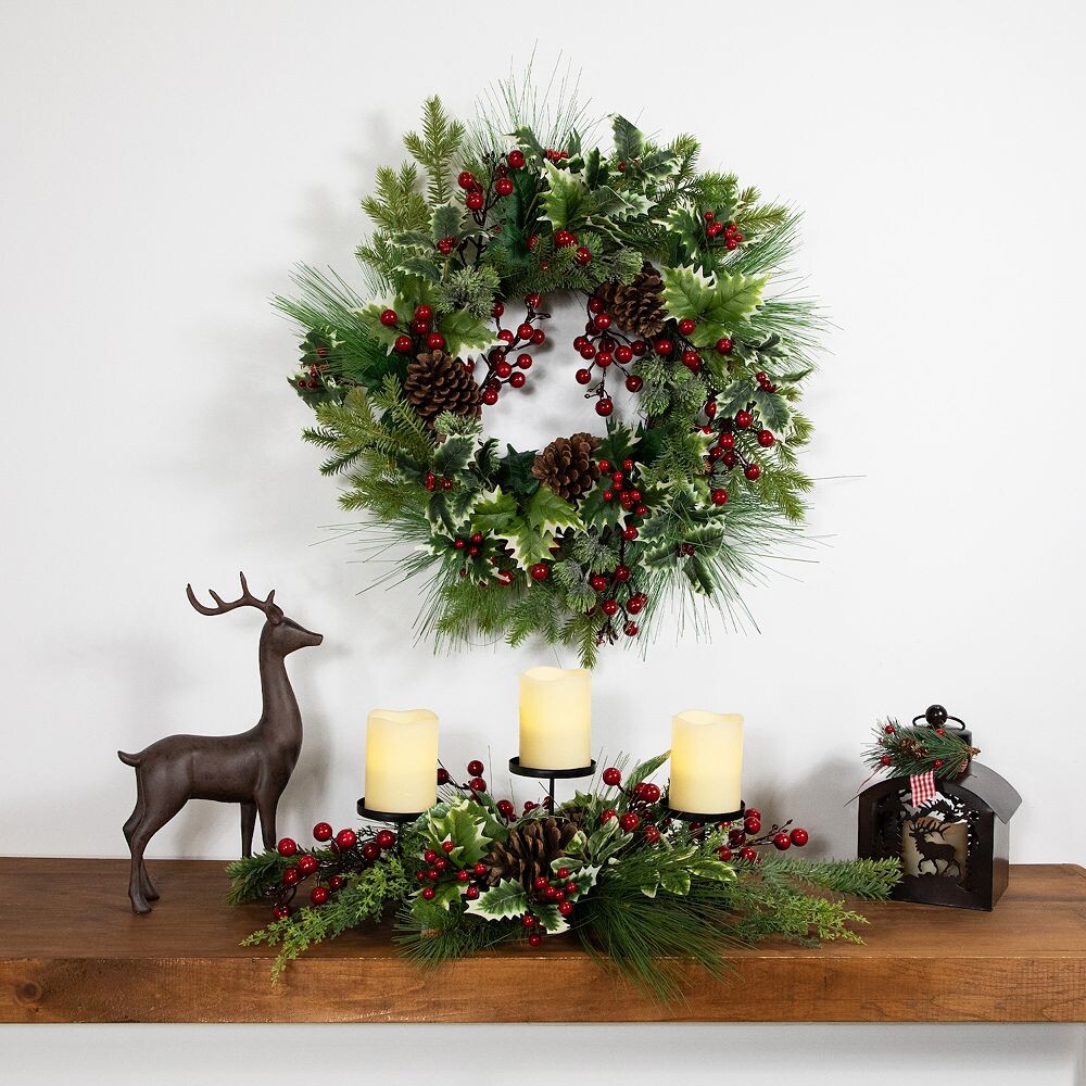 Рождественский подсвечник Northlight Holly & Berries, зеленый