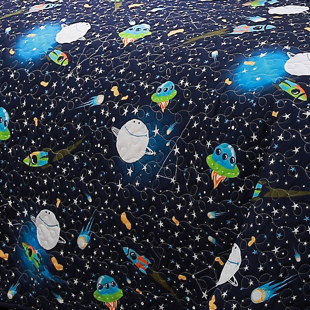 Если ваш ребенок любит смотреть на звезды и планеты, этот комплект одеял станет идеальным вариантом для его большой детской спальни.