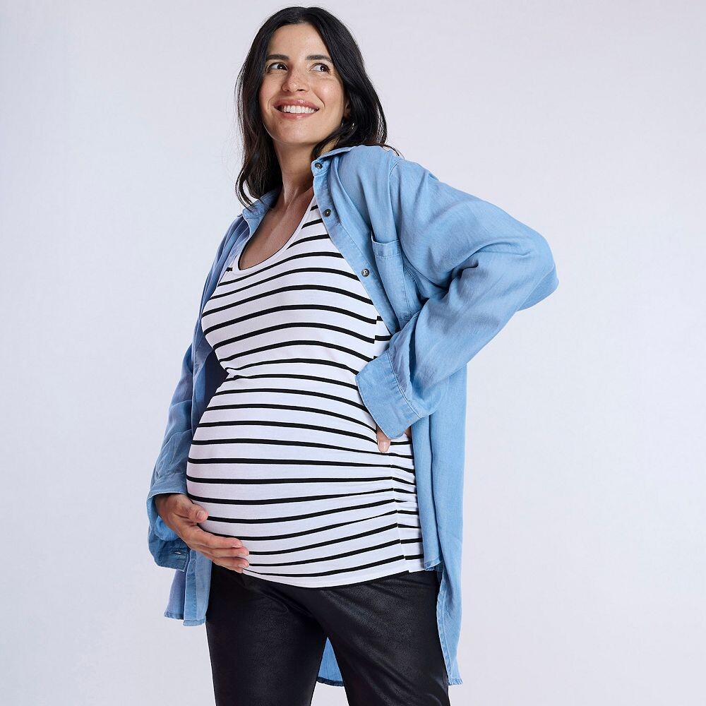 Окунитесь в материнство со стилем, комфортом и уверенностью в этом женском топе с длинными рукавами на пуговицах спереди от Motherhood.