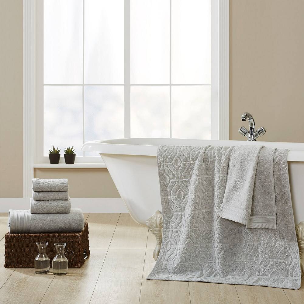 Завершите эстетику своей ванной комнаты с помощью этого экологически чистого набора полотенец Amrapur Modern Threads Diamond Gate, состоящего из 6 предметов!