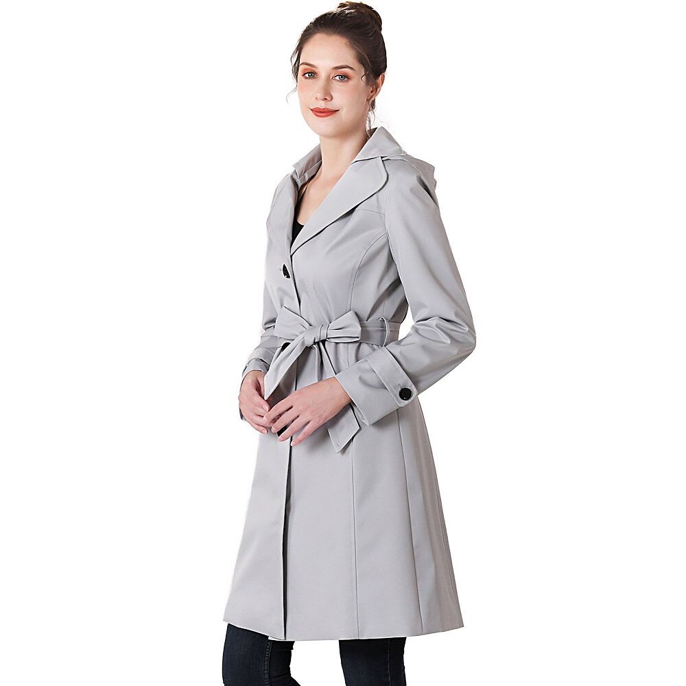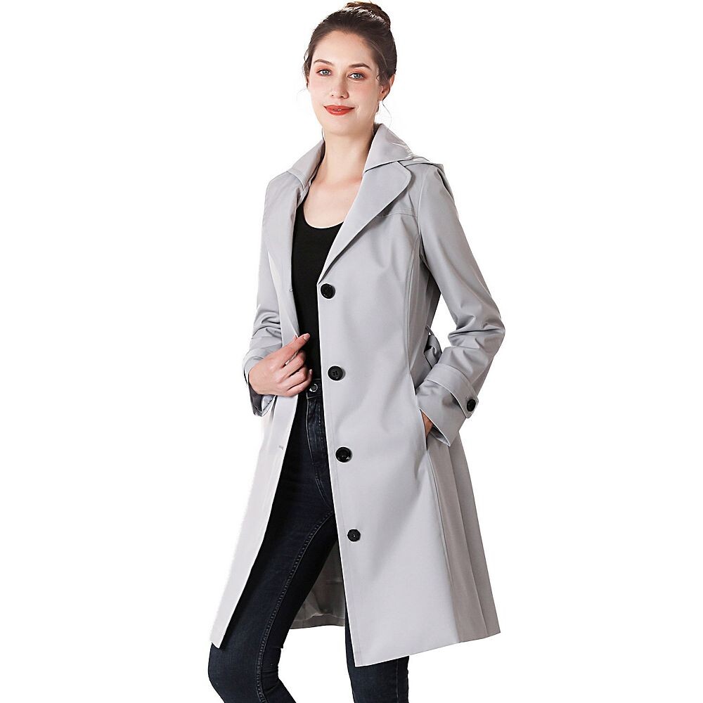 Вневременная привлекательность однобортного тренча подчеркивается двойными лацканами и манжетами с поясом. Капюшон, отстегивающийся на пуговицах, позволит вам быть на шаг впереди погоды.