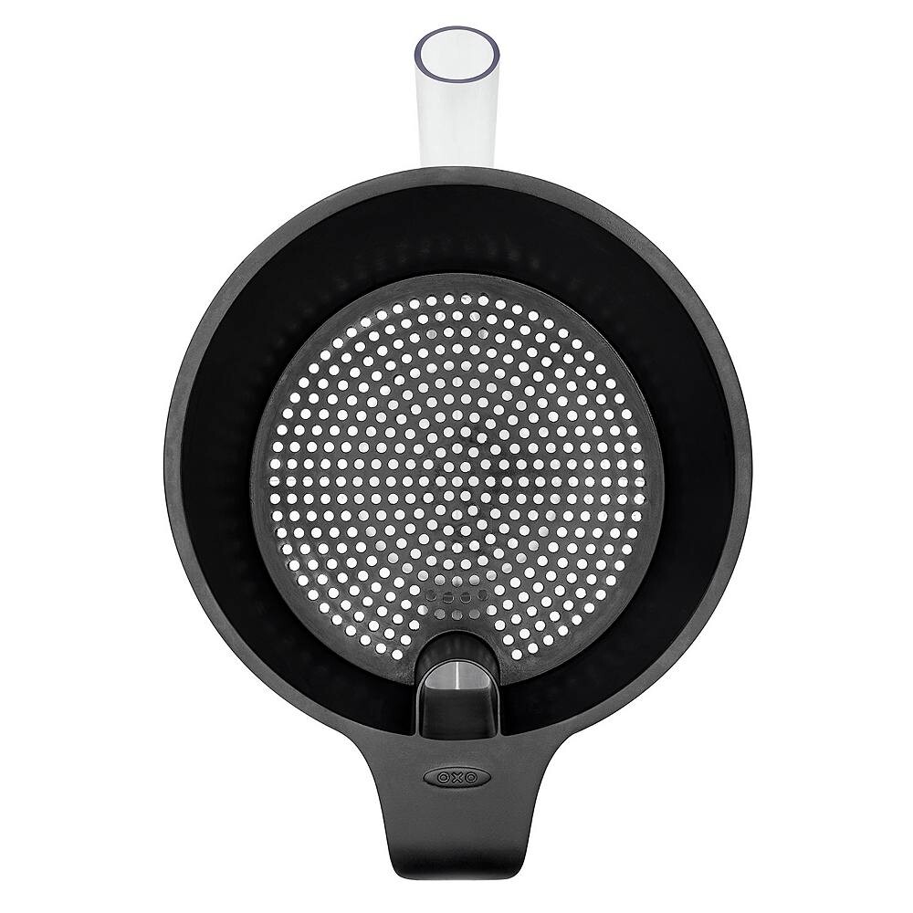 Приготовление соуса еще никогда не было таким простым с сепаратором жира OXO Good Grips. Просто вставьте пробку в носик, и когда вы выльете капли со сковороды в жироотделитель, сито отделит ненужные кусочки, и жир поднимется наверх.