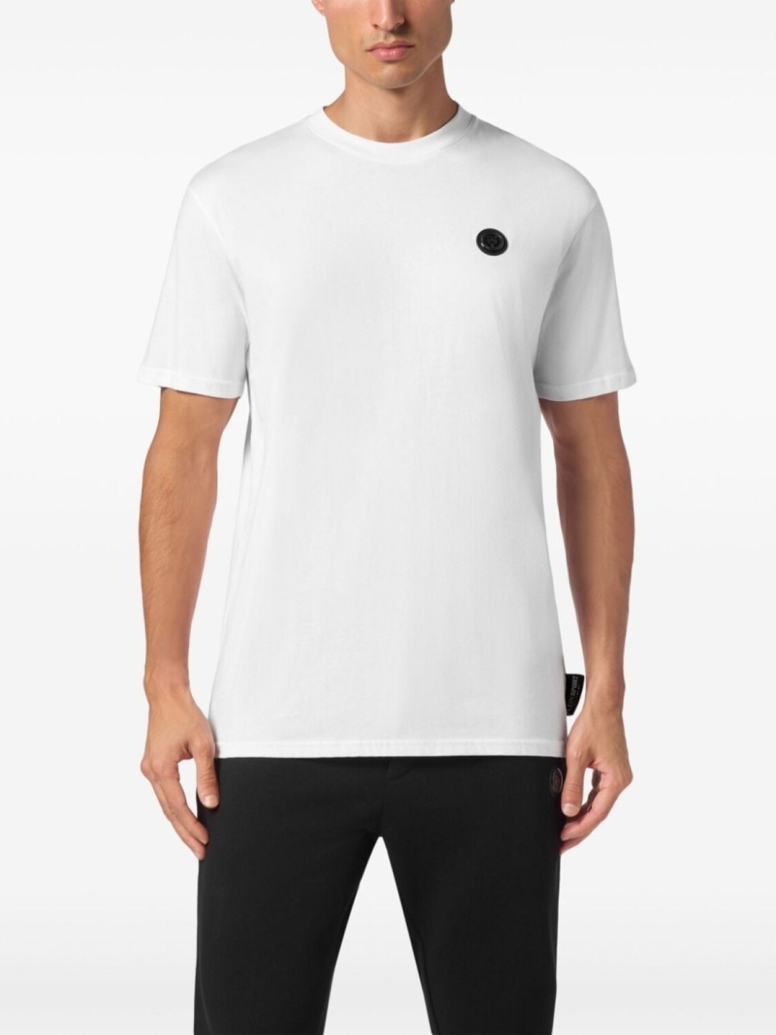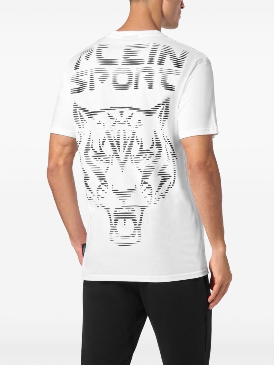 Белый хлопок, тигровый принт, круглый вырез горловины, короткие рукава, логотип на груди, прямой подол, внутренняя нашивка с логотипом