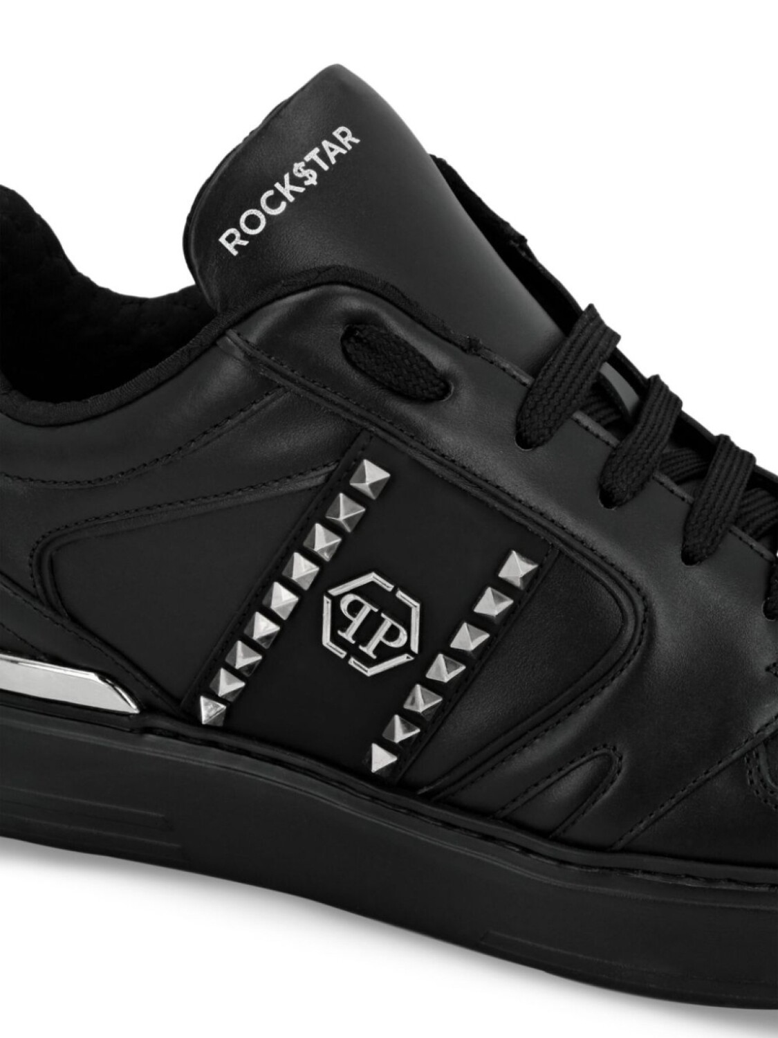 Кожаные кроссовки Philipp Plein с заклепками, черный