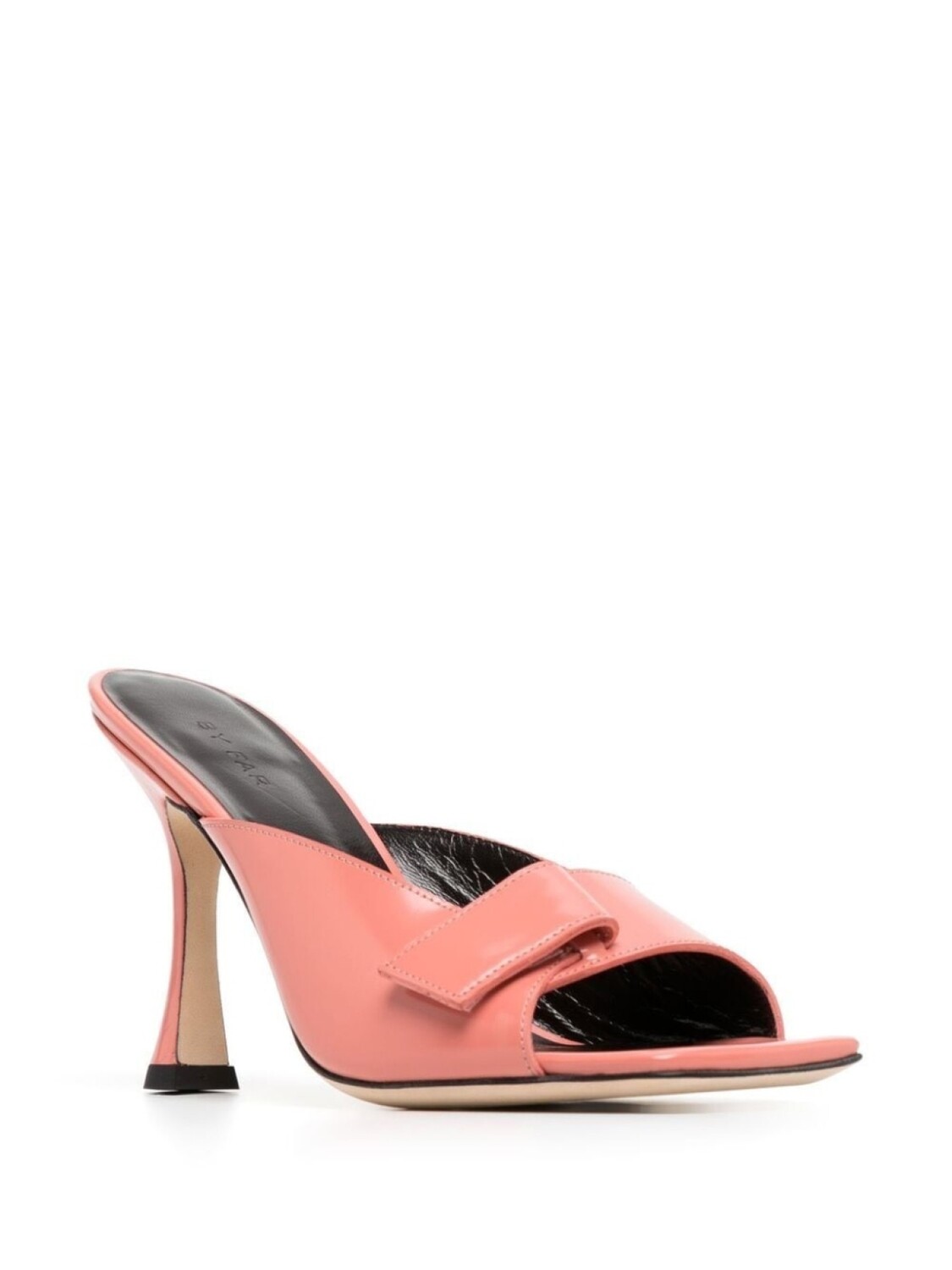 Лососевый, кожа, глянцевый финиш, квадратный носок, открытый носок, застежка на липучке сбоку, кожаная стелька с логотипом и модель без застежки.