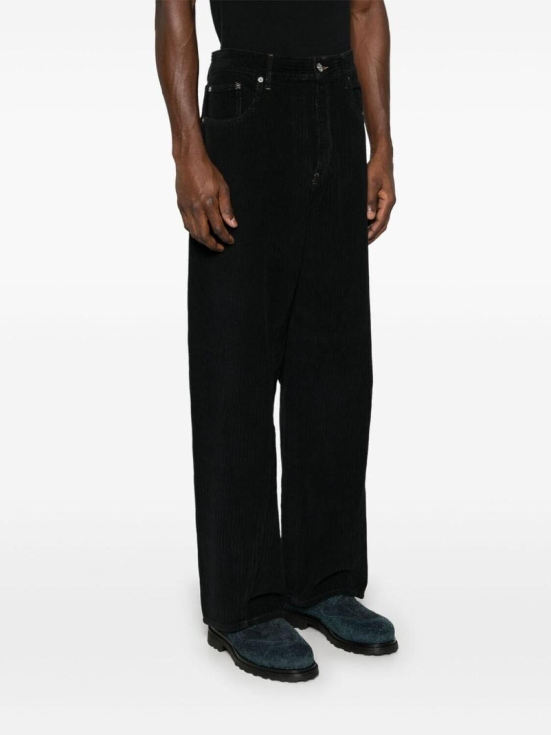 Черный, хлопок, вельветовый материал, ширинка на пуговицах, петли для ремня, классическая пятикарманная модель, нашивка с логотипом сзади, зауженный крой