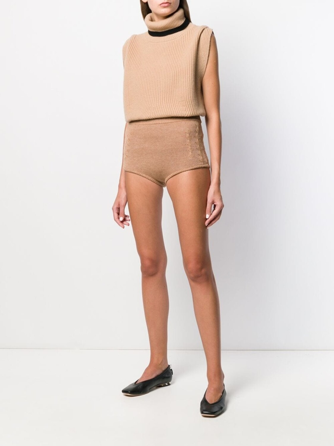Шорты Mimie в рубчик от Cashmere In Love. Пояс в рубчик, вязка с косичками и короткая длина.