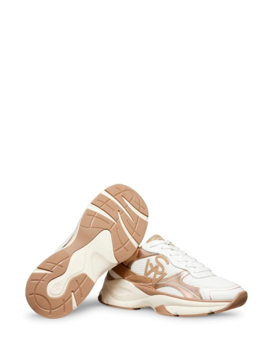 Бежево-белая сетка, панельный дизайн с цветными блоками, миндалевидный носок, аппликация с логотипом, тисненый логотип на язычке, фирменный задник, петля для подтягивания на пятке, мягкая подкладка на щиколотке, фирменная стелька, сетчатая подкладка, массивная резиновая подошва, шнуровка спереди