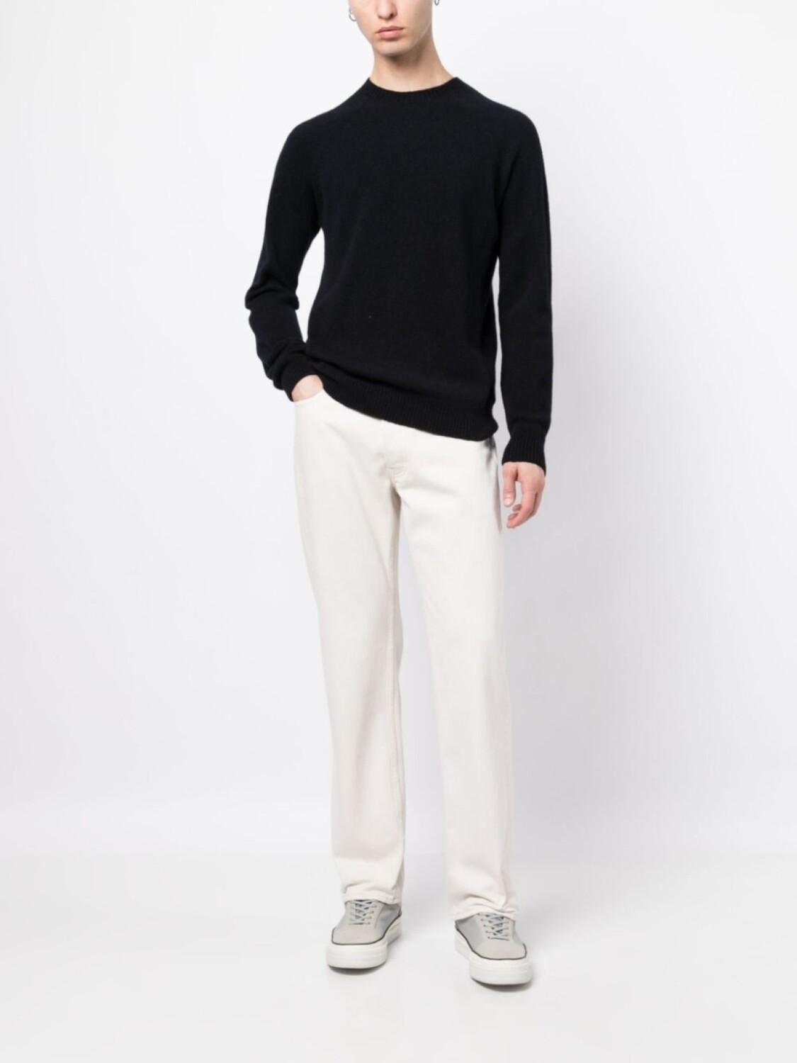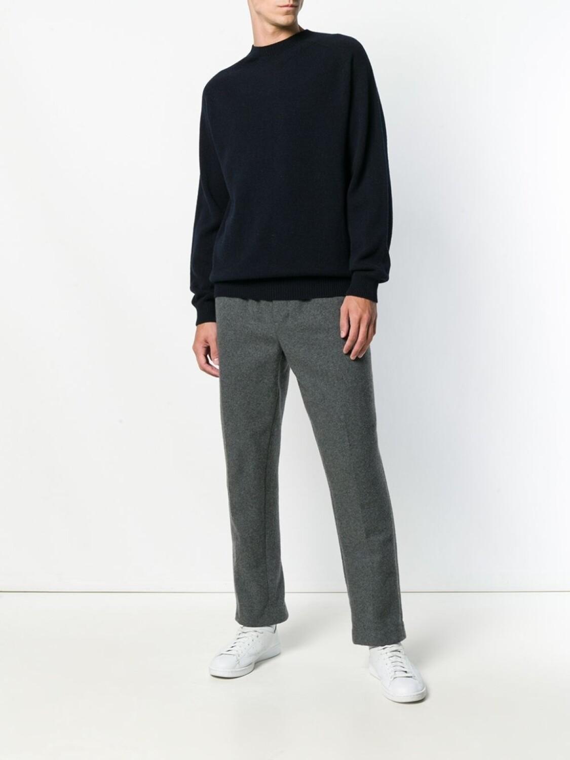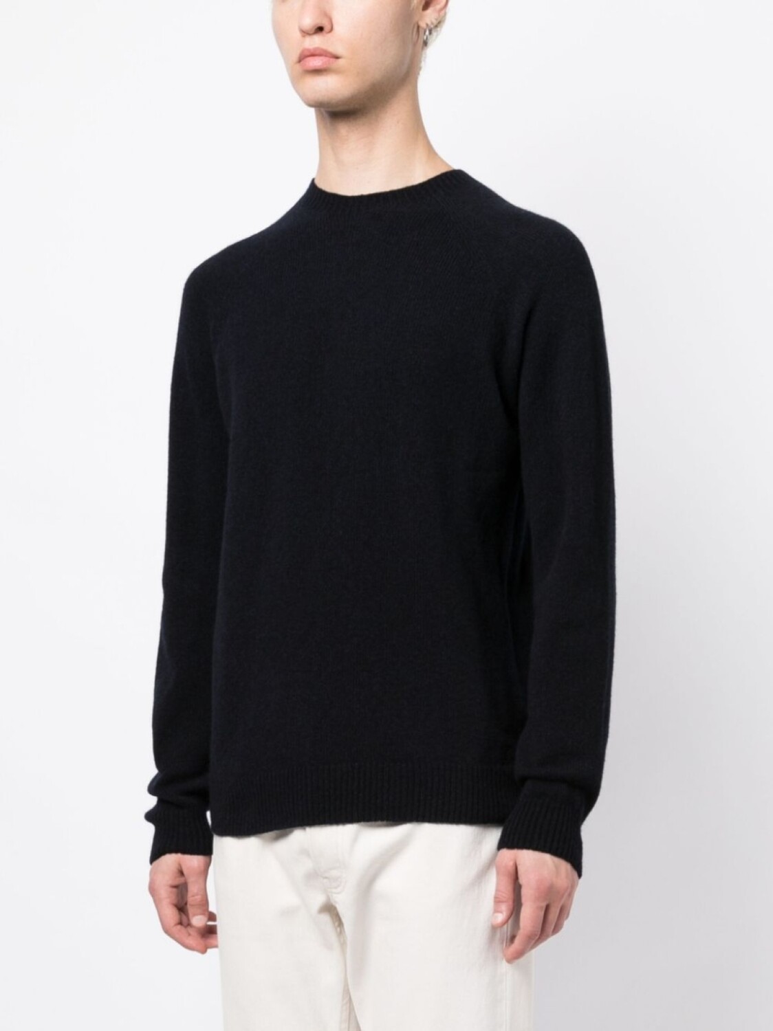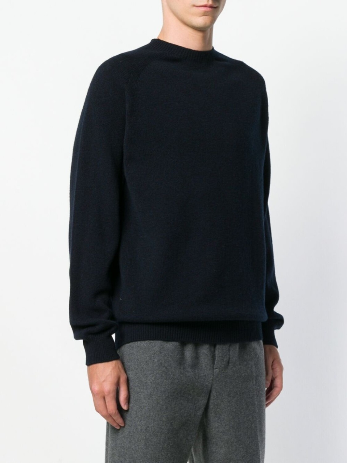 Свитер с круглым вырезом от Sunspel. Длинные рукава, тонкая вязка и свободный силуэт. Цвет: темно-синий.