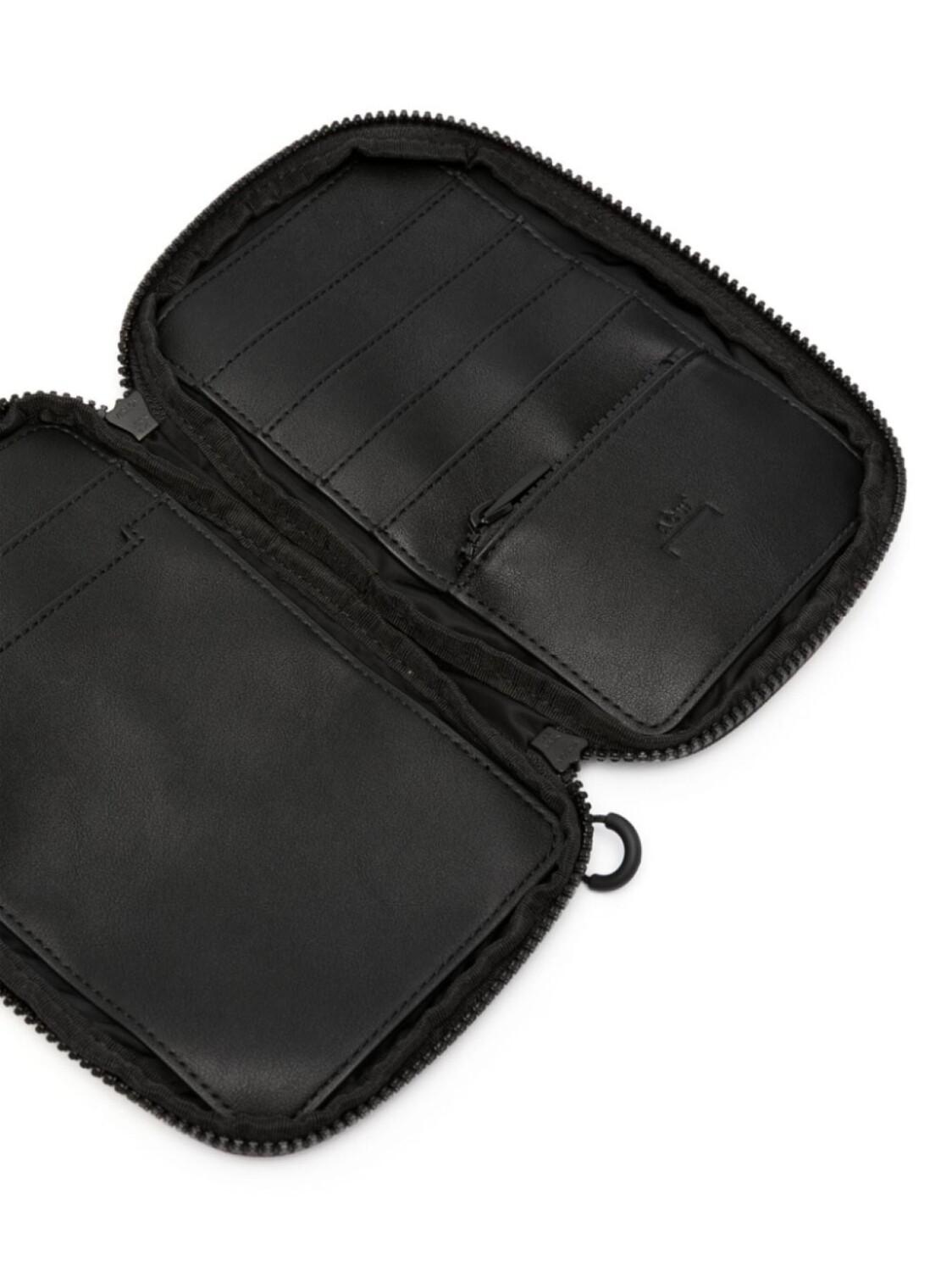 Хаки, металлический логотип, ручка с плоским верхом, передний карман на молнии и прорезной карман сзади.
