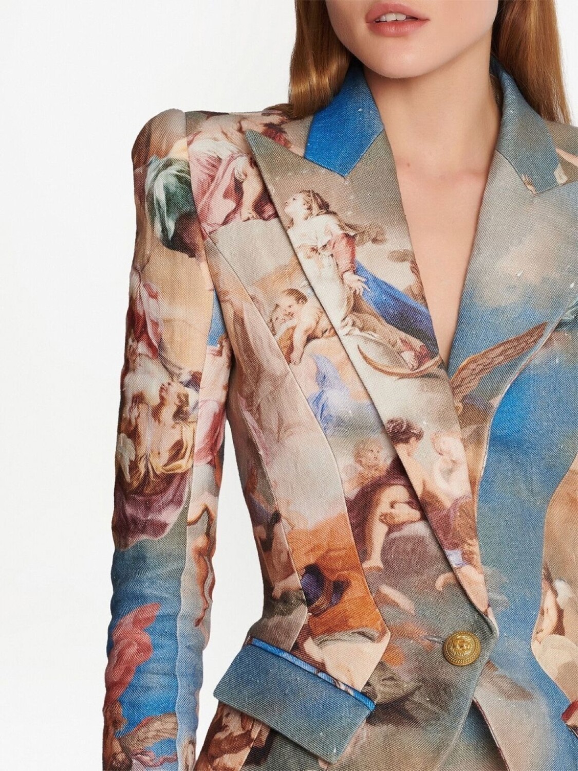 Balmain двубортный блейзер с абстрактным принтом, синий