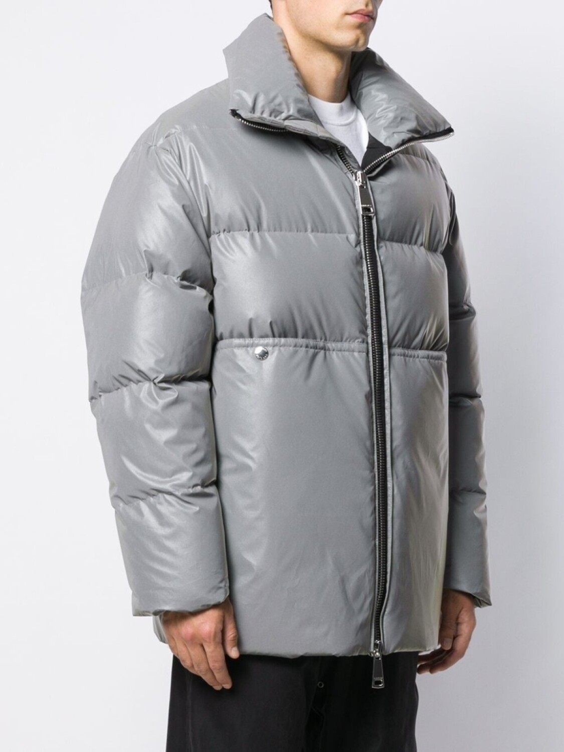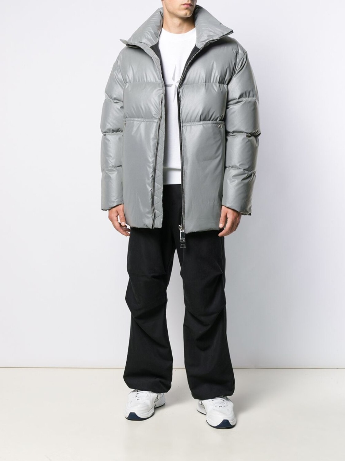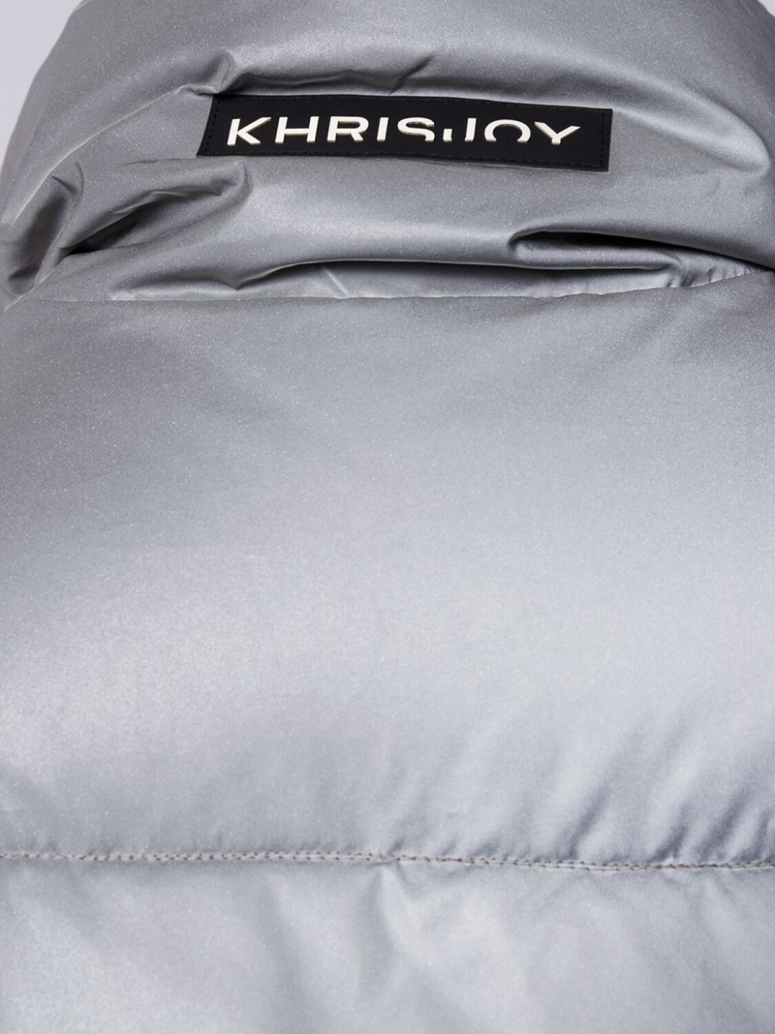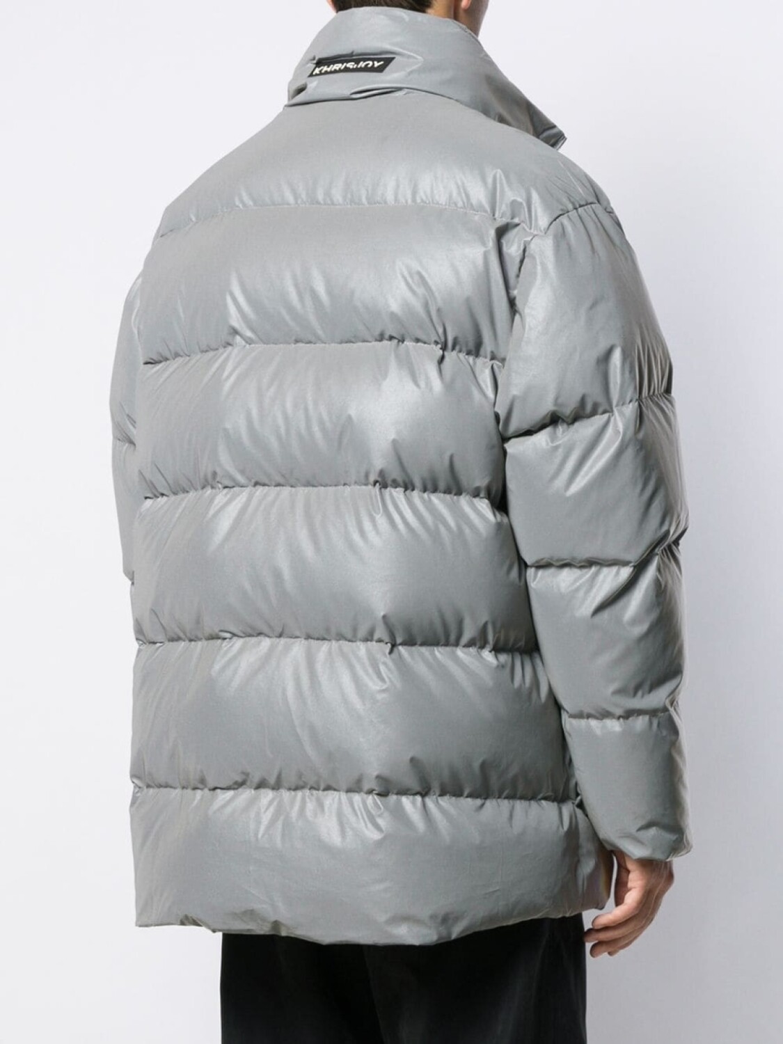 Дутое пальто свободного кроя от Khrisjoy. Воротник с высокой стойкой, застежка на молнии спереди, вставка с логотипом сзади, два передних кармана, обитая внутренняя сторона и свободный крой. Цвет: серый.