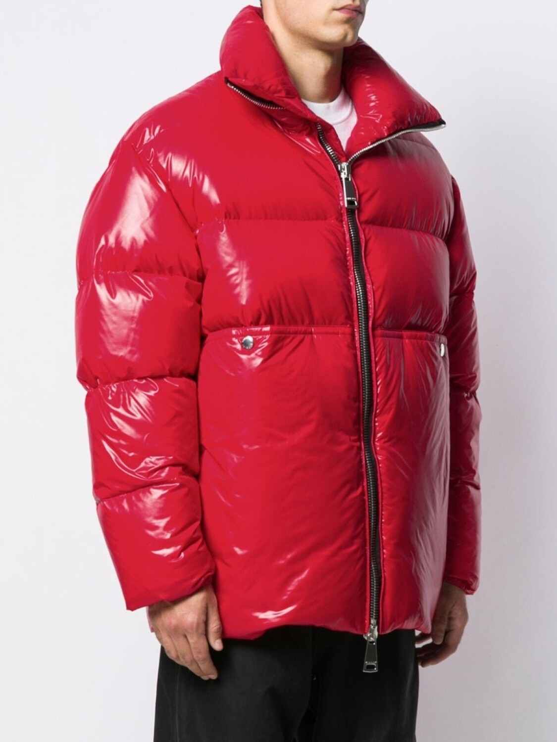 Дутое пальто свободного кроя от Khrisjoy. Воротник с высокой стойкой, вставка с логотипом сзади, застежка на молнии спереди, два передних кармана и обитая внутренняя сторона. Цвет: красный.