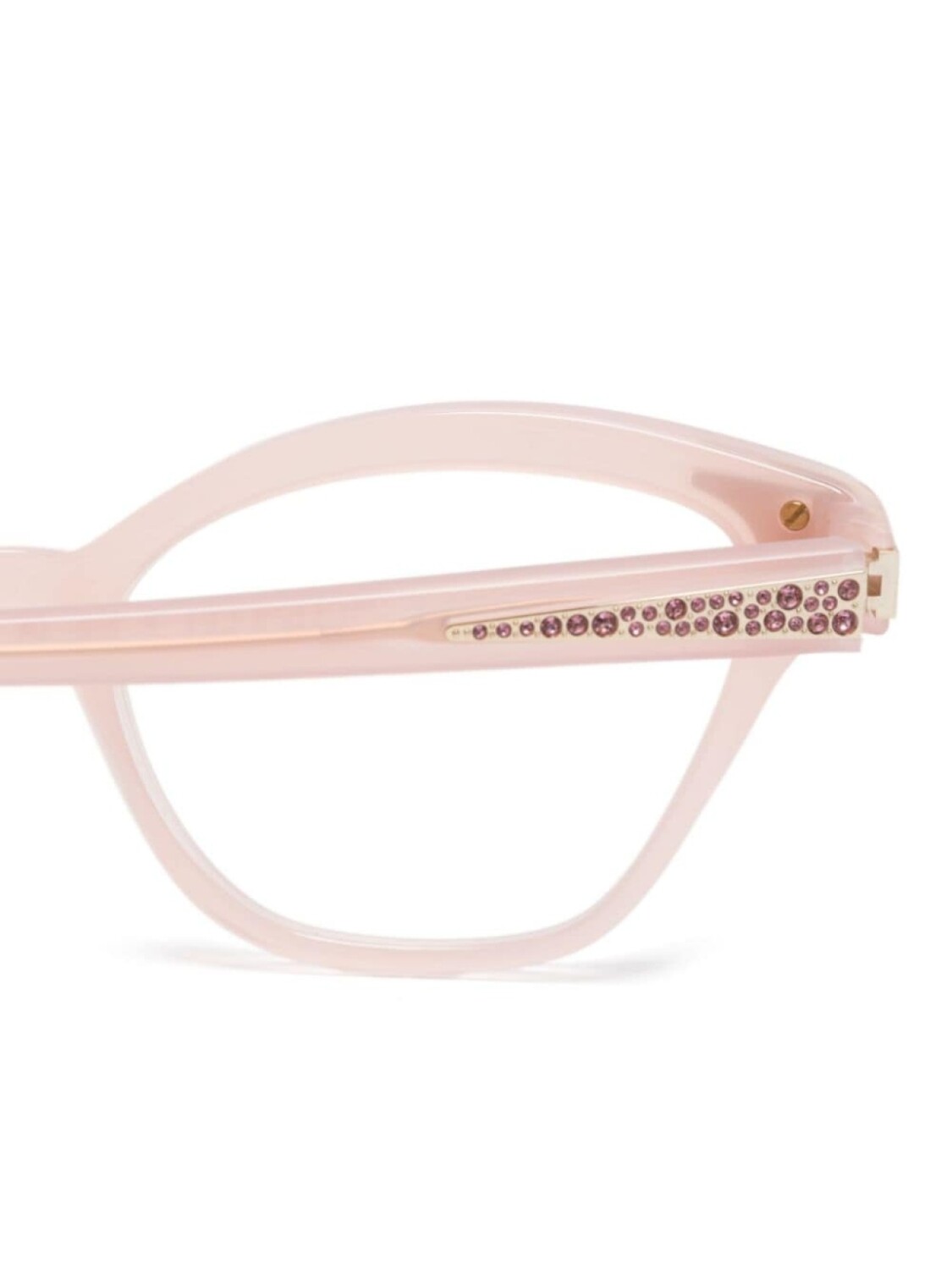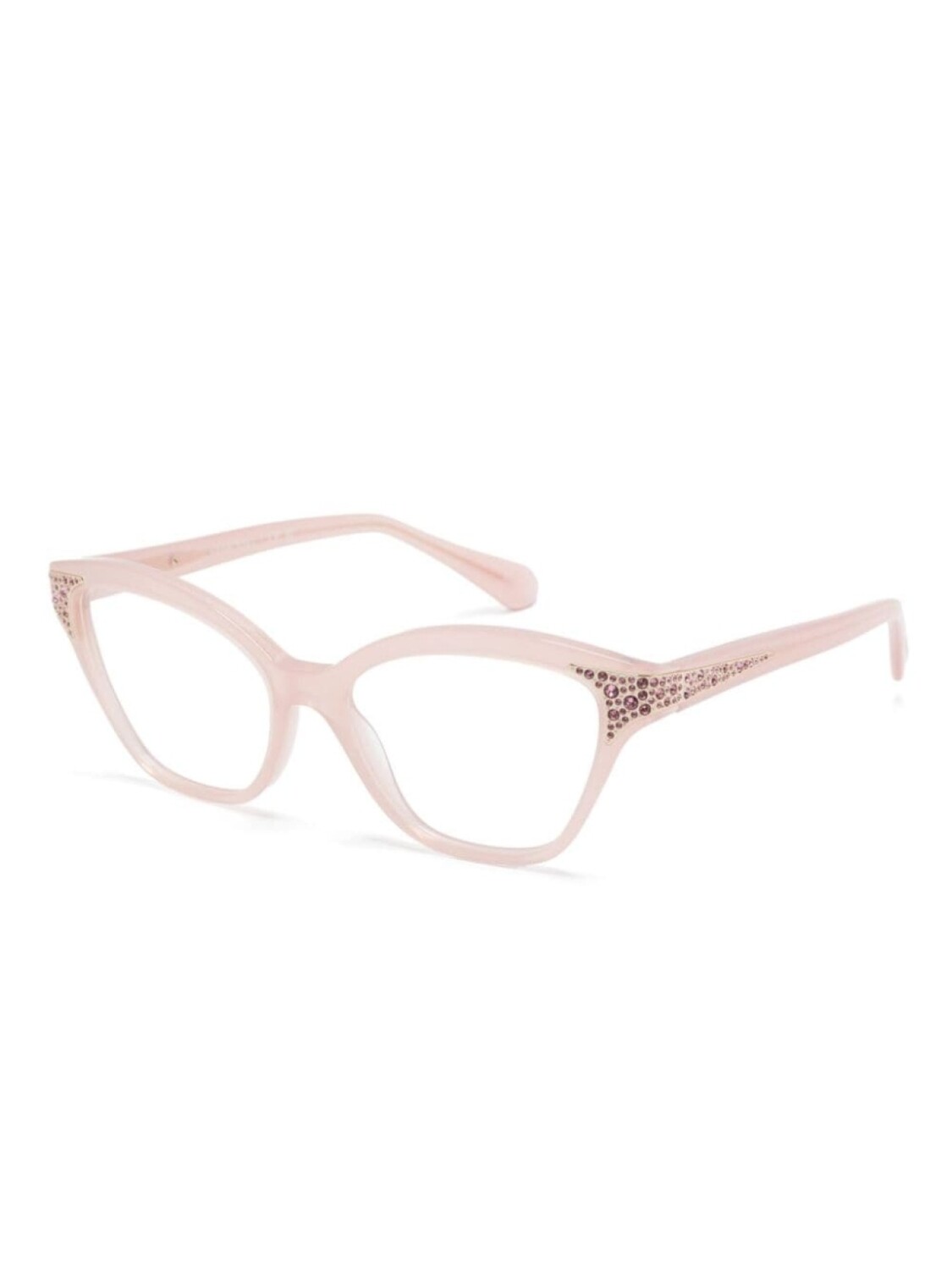 Светло-розовый, заклепки с кристаллами Swarovski, прозрачный материал, оправа «кошачий глаз», прозрачные линзы, прямые дужки, дужки с закругленными концами, носоупоры, Обратите внимание, что на FARFETCH продаются оправы с линзами без диоптрий., в комплект входит чехол-чехол. для очков.