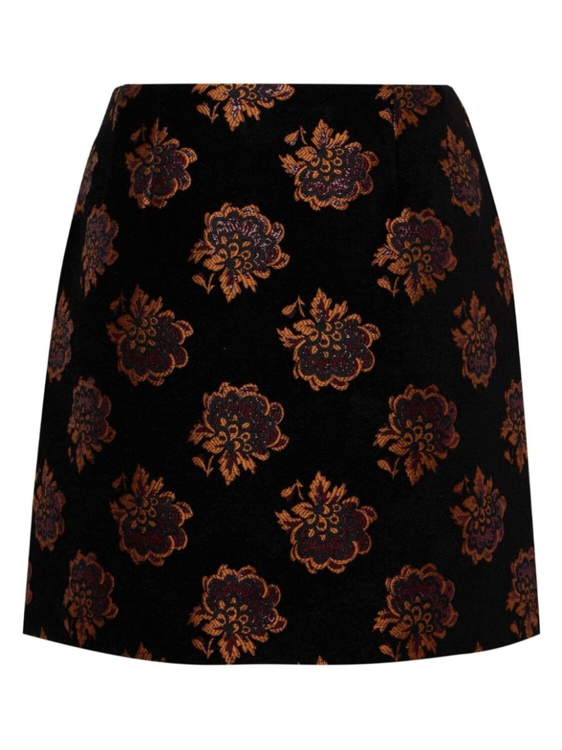 Черный/многоцветный, смесь хлопка и переработанного полиэстера, узорчатый жаккард, длина до бедра, потайная застежка сбоку, отделка из искусственной кожи, А-силуэт, боковые разрезы