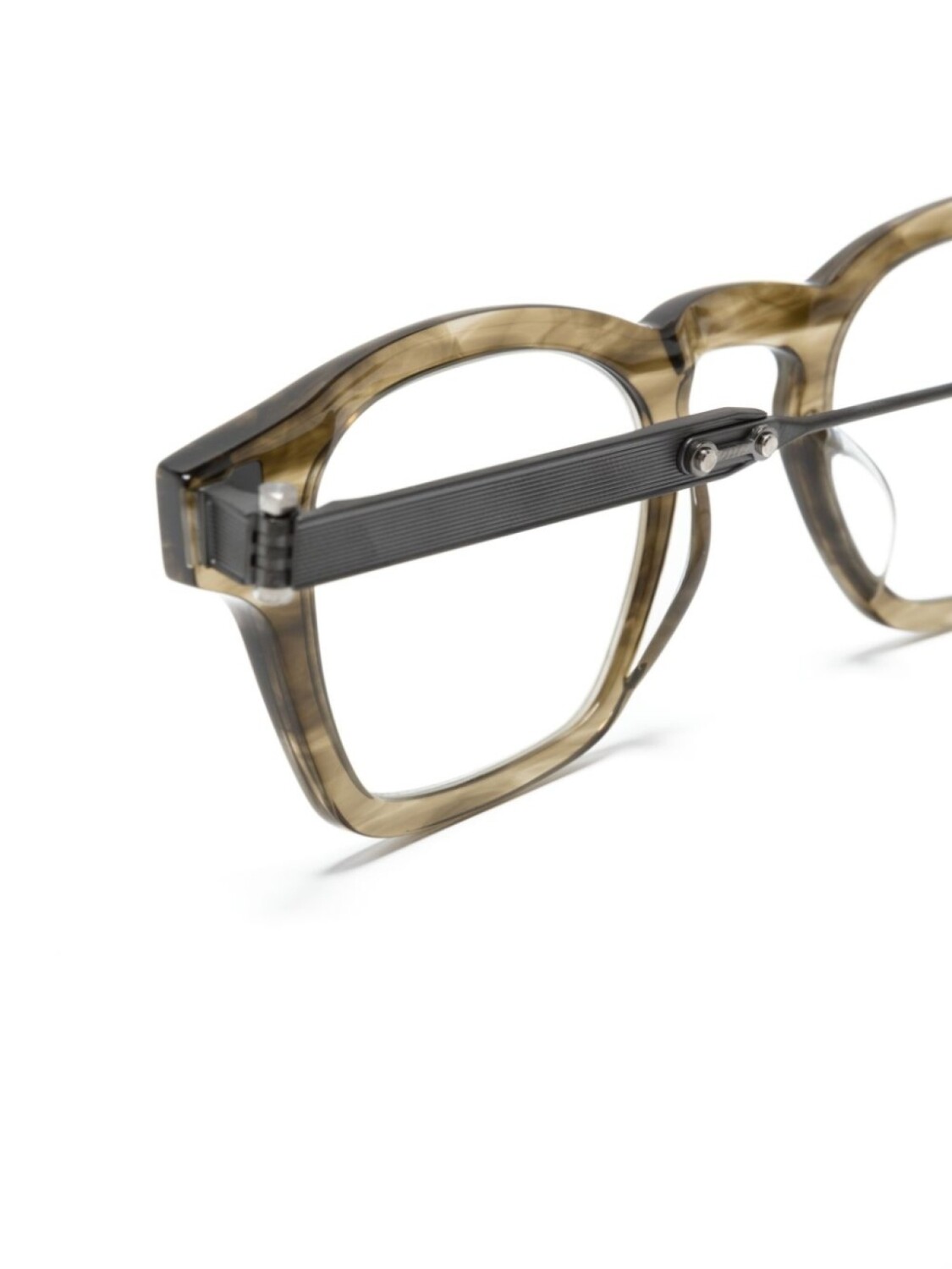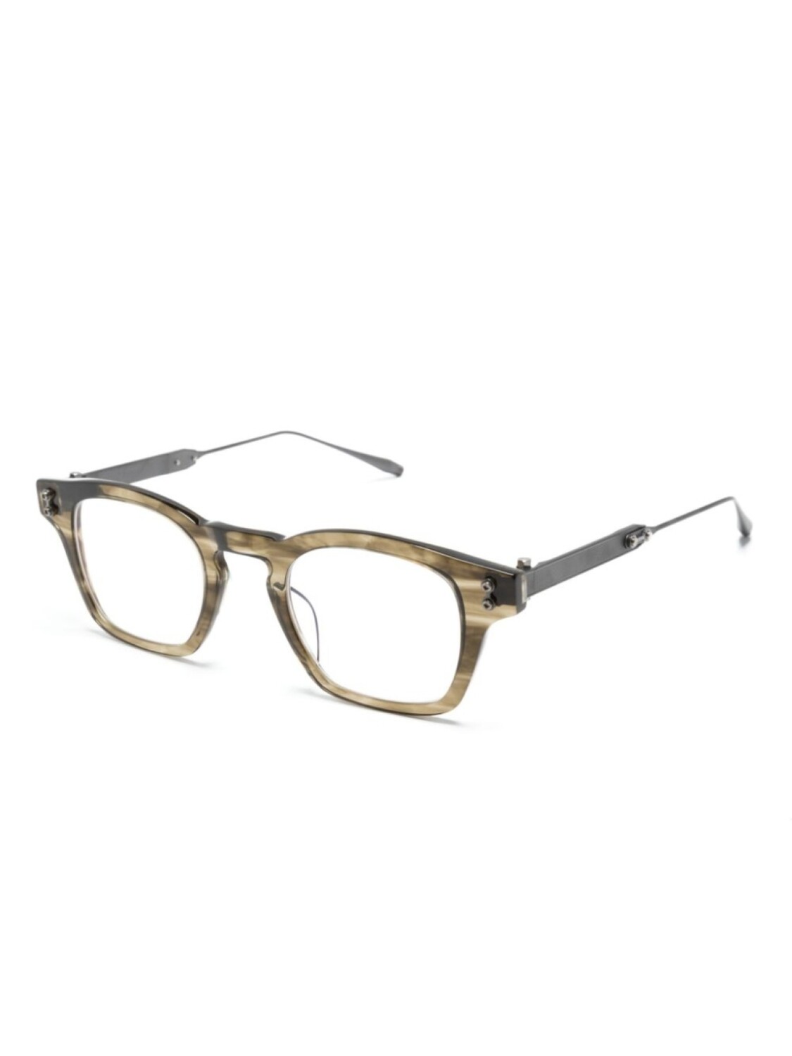 Серый, ацетат, титан, эффект дыма, трапециевидная оправа, прозрачные линзы, люверсы, прямые дужки с закругленными концами, В комплект входит защитный чехол для очков., Обратите внимание, что на FARFETCH продаются оправы с линзами без диоптрий.